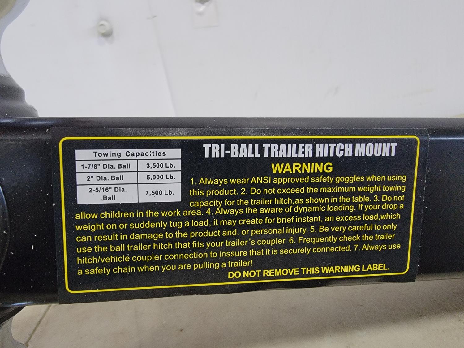 1142 12 Inch Tri-Ball Trailer Hitch (Unused)