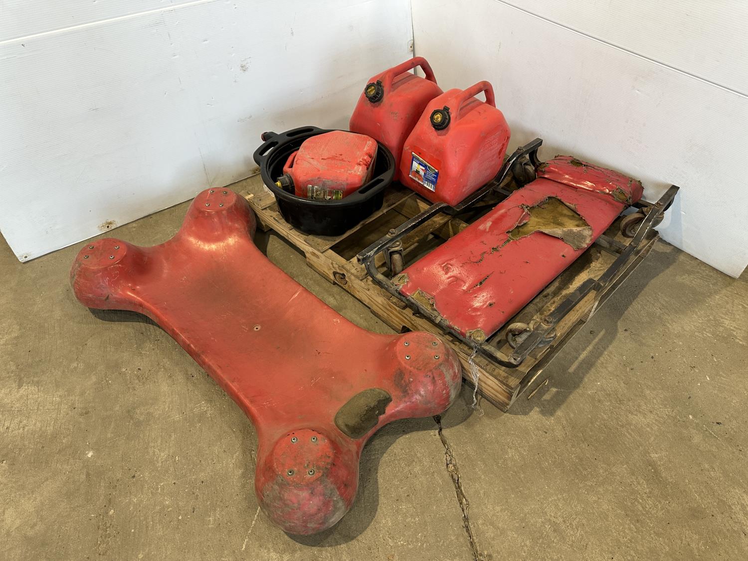 1290 (3) Jerry Cans, (2) Creepers and Poly Oil Catch Pan