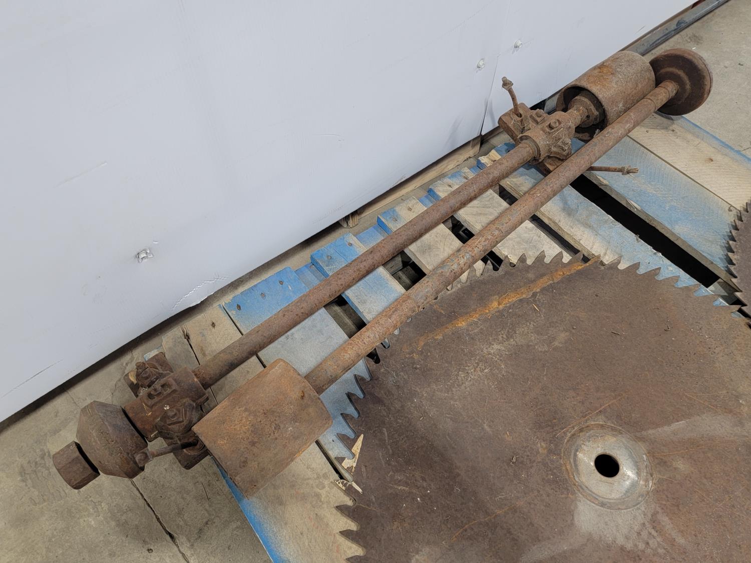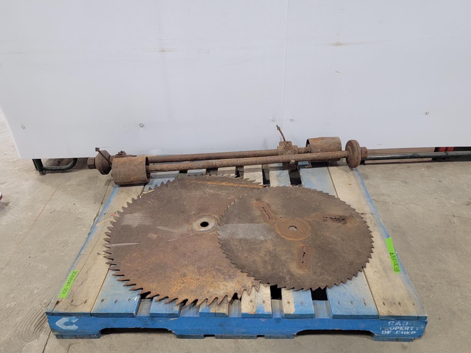 1285 32 Inch Sawblade, 24 Inch Sawblade and (2) Mandrils