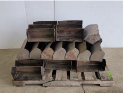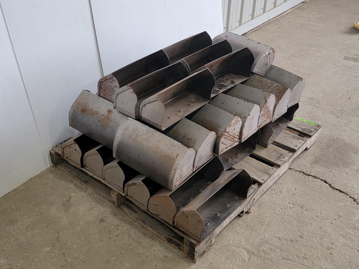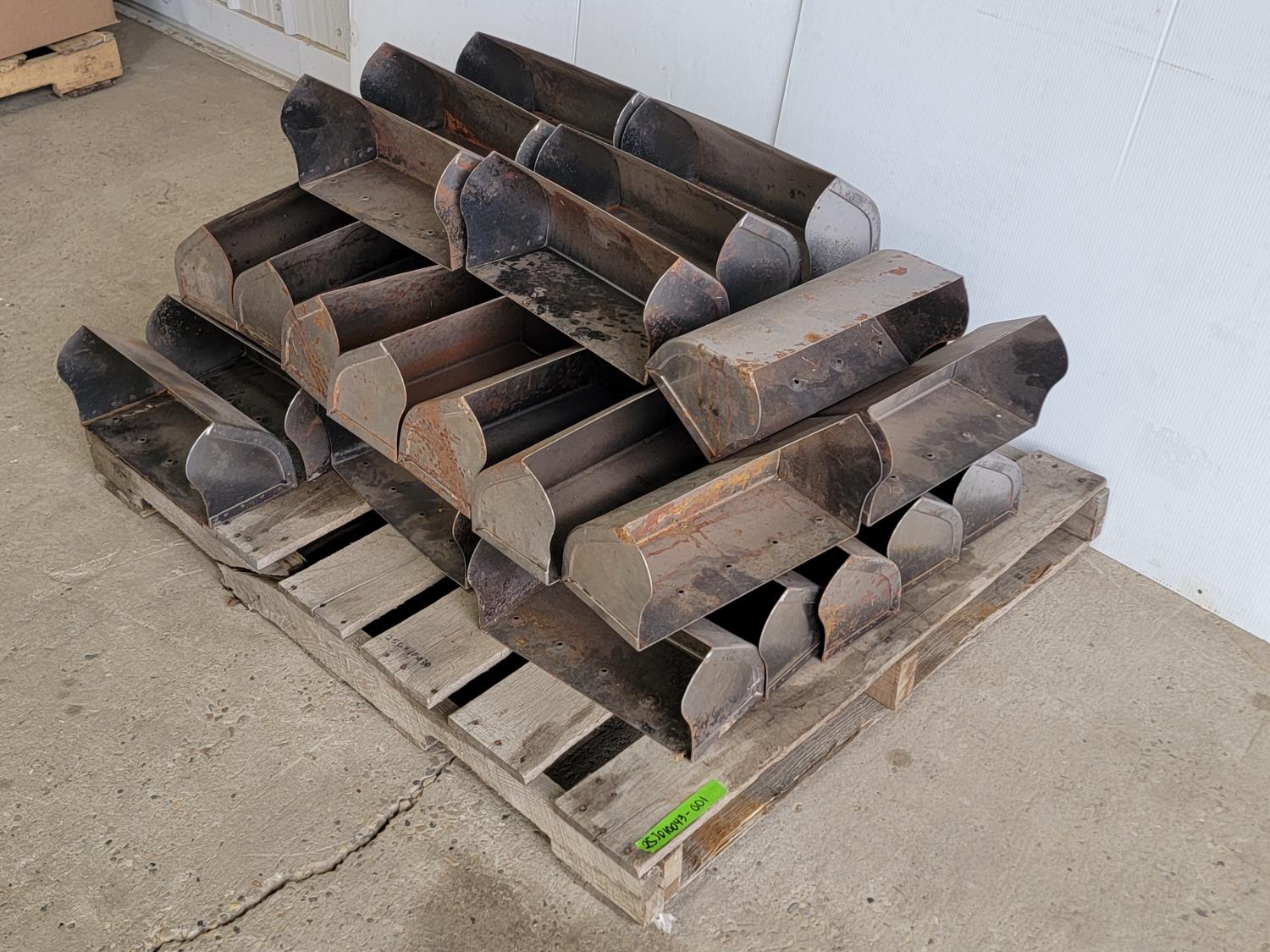 (37) Metal Grain Elevator Scoops and (8) Metal Dividers