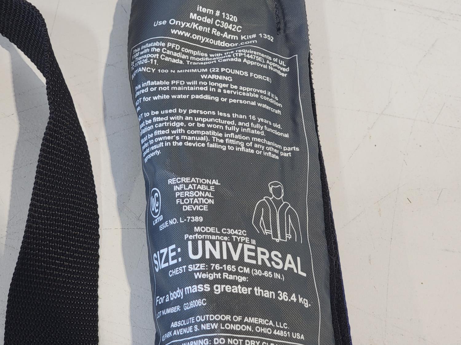 1407 (4) Universal Inflatable Personal Floatation Devices and (1) Size XL Life Jacket