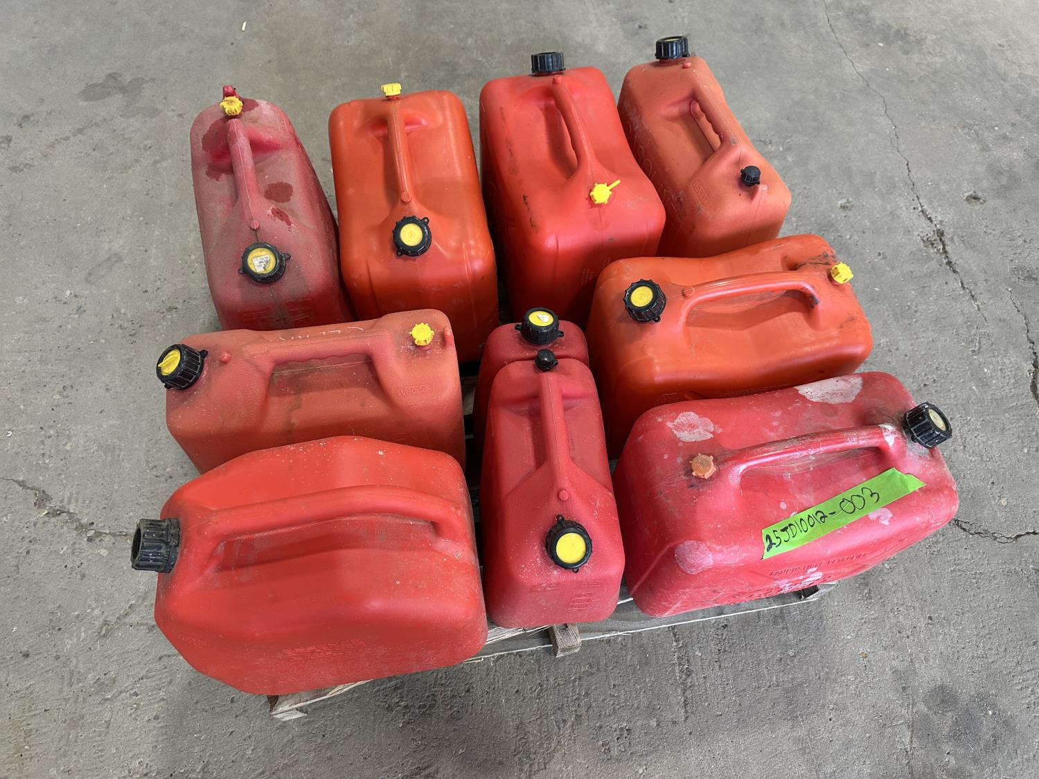 1230 (9) Assorted Sized Jerry Cans