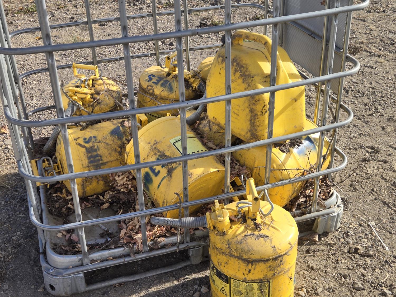 2241 (9) Metal Fuel Cans, (1) 20L Poly Jerry Can