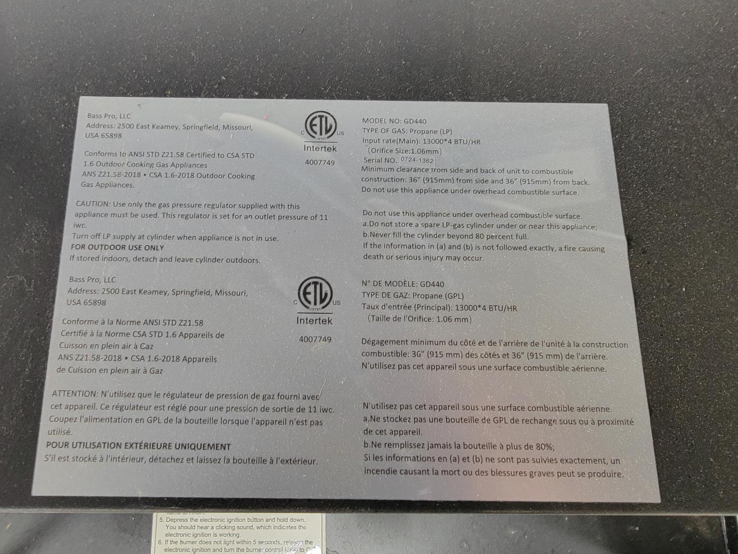 1346 Cabela's 36 Inch Propane Griddle