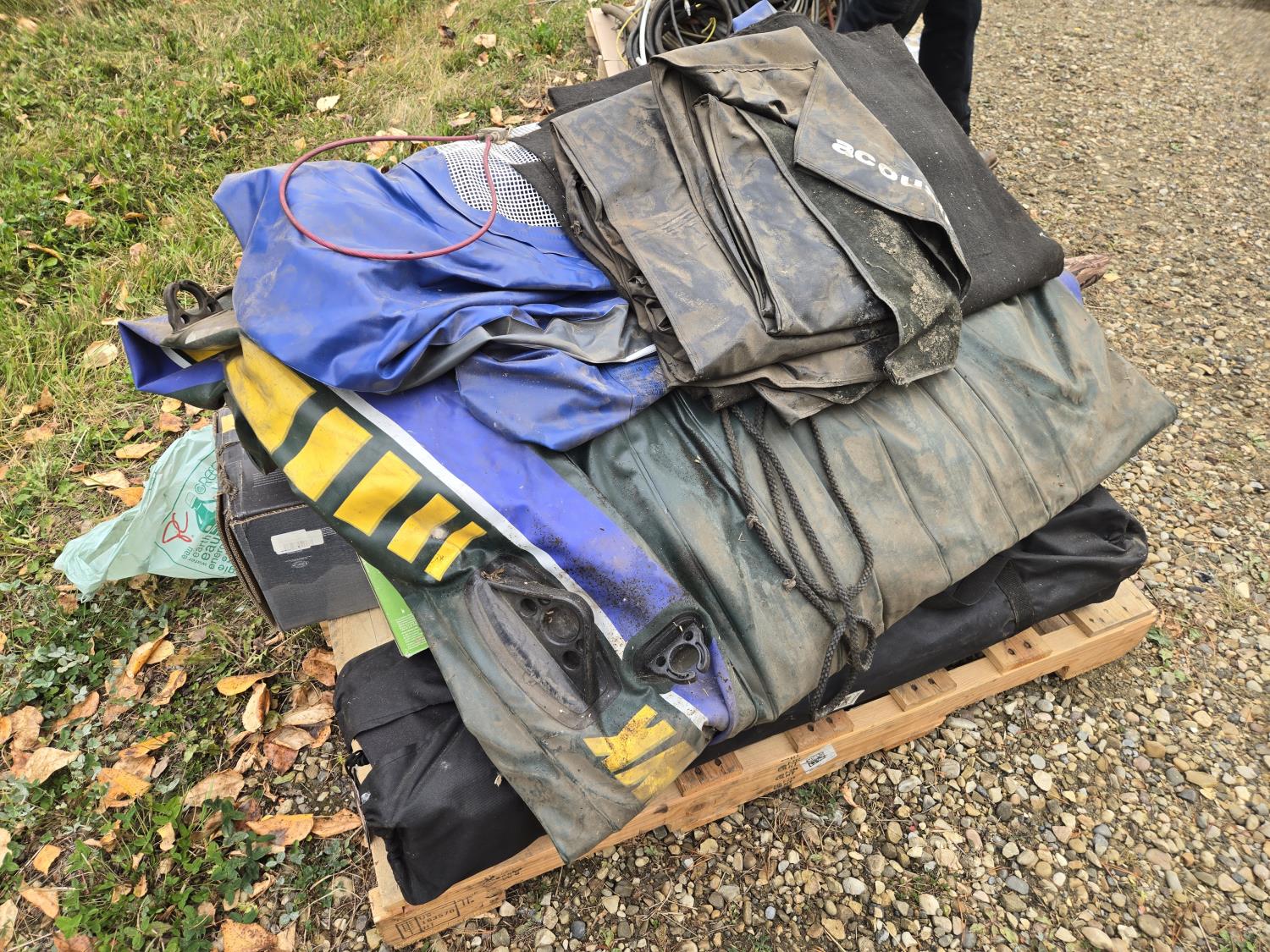 (2) unused Kuma Big Bear camp cots, lantern, Coleman Black out tent, rubber dingy