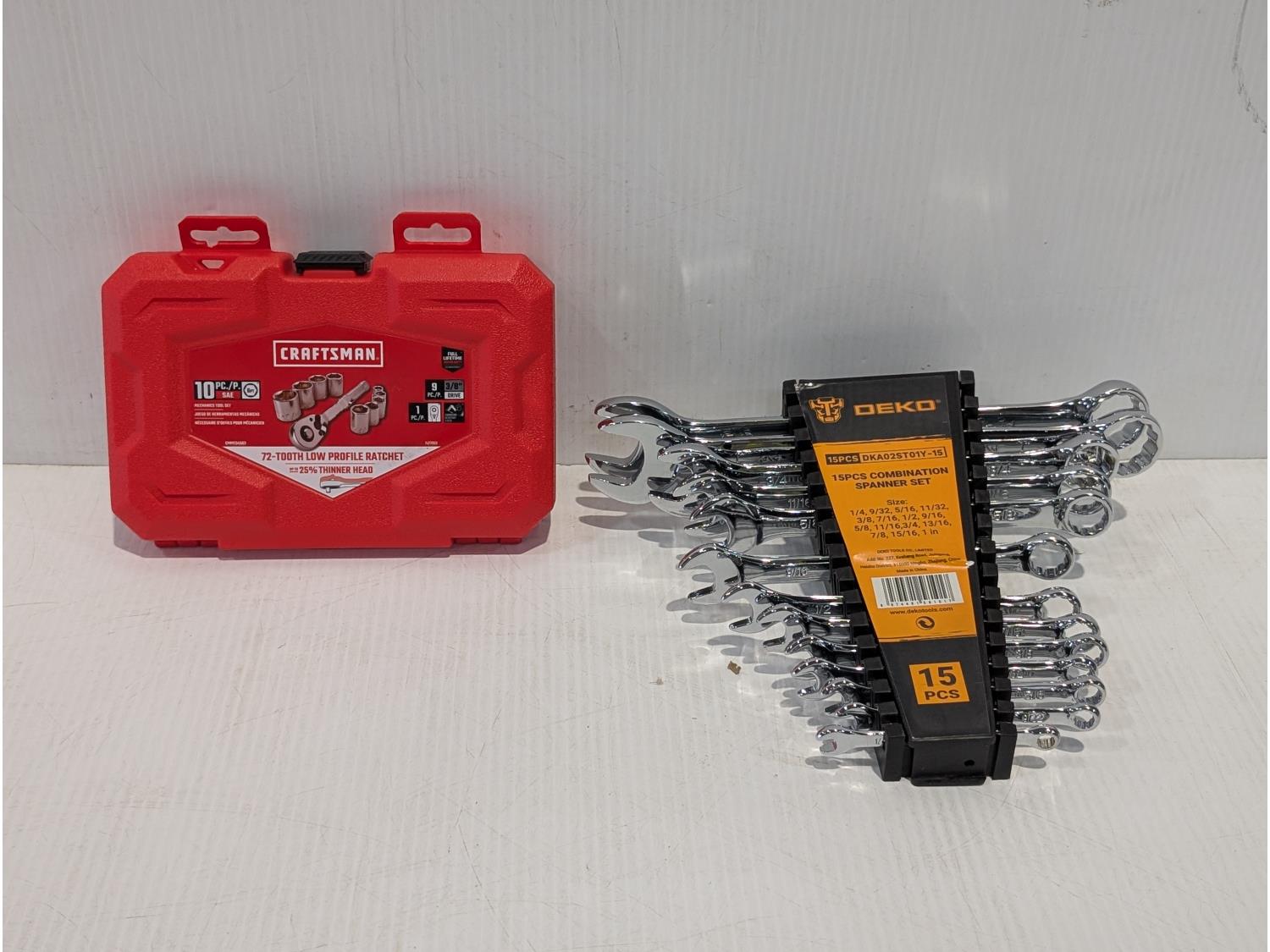 1486 Craftsman Low Profile 3/8 Inch SAE Ratchet Set and Combination Wrench Set