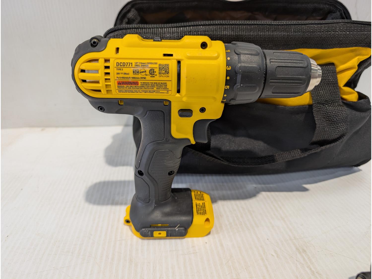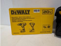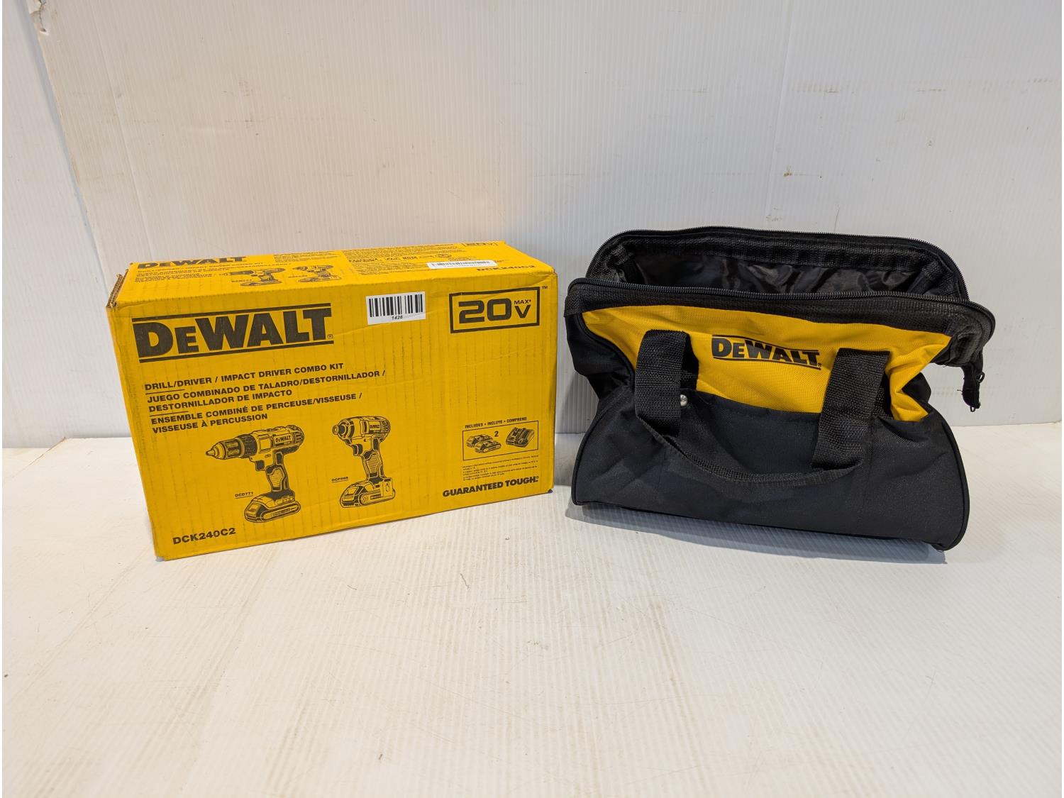 1546 DeWalt 20V 1/2 Inch Drill, 1/4 Inch Impact Driver, (2) Batteries, Charger and Tool Bag (Unused)