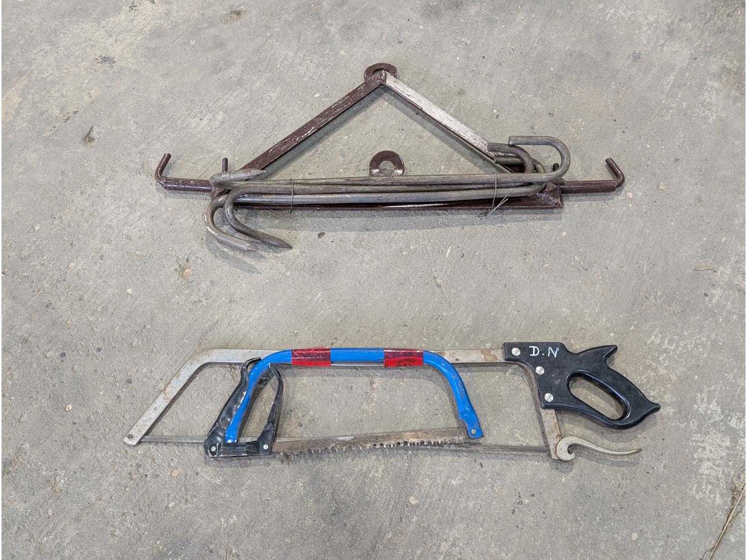 1048 Gambrel, (4) Meat Hooks and (2) Hand Saws