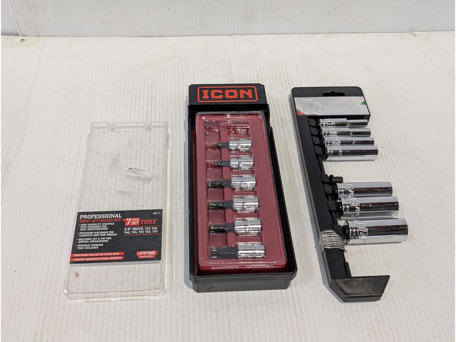 1559 Icon Torx Bit Sockets and 3/8 Inch Drive SAE Deep Sockets