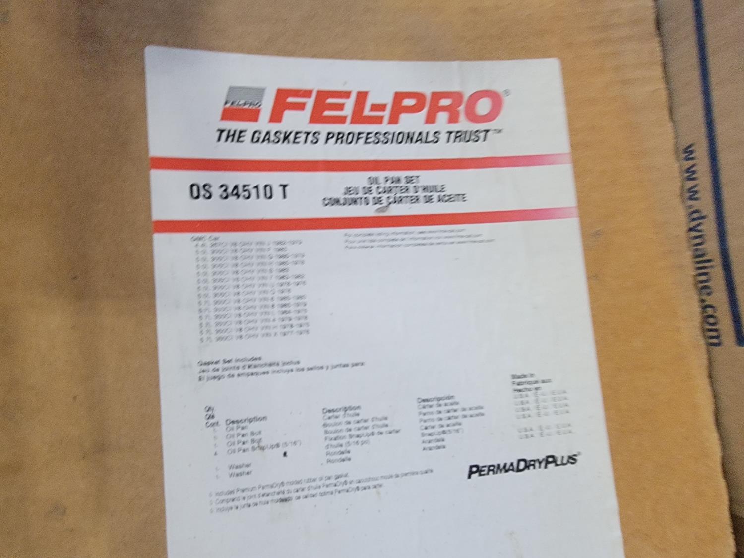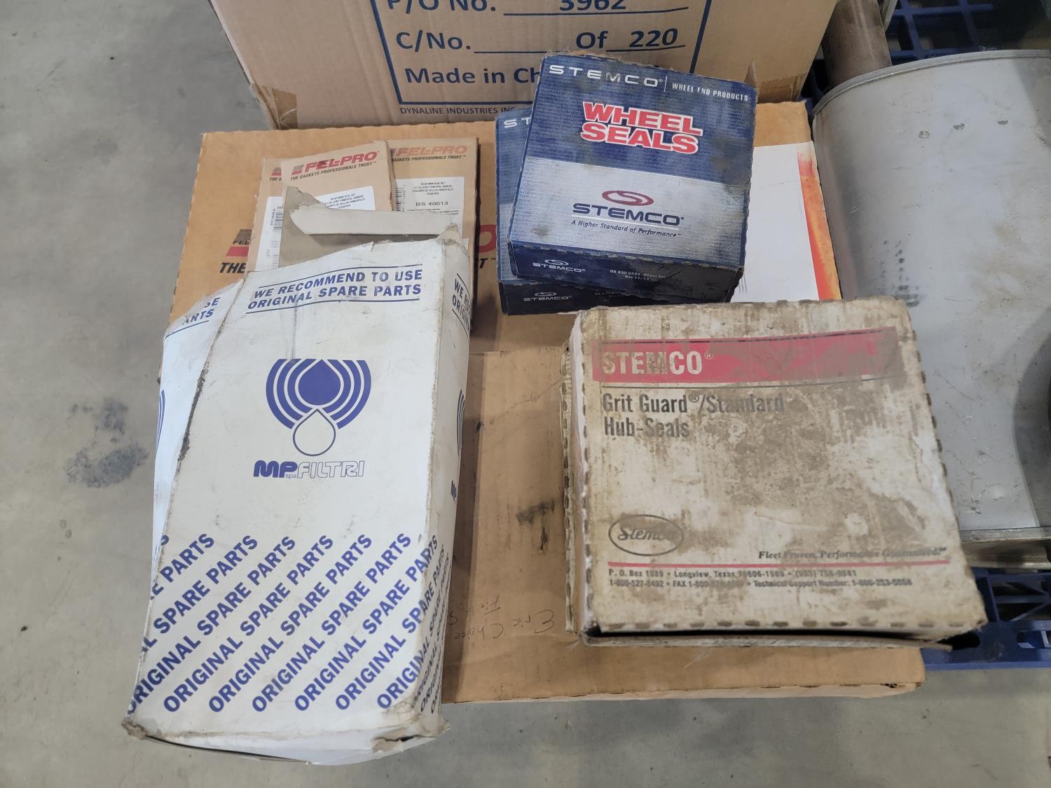 Belts, wheel seals, Zerostart cab and cargo heater (untested), head gasket, rear main seal sets, oil pan gaskets