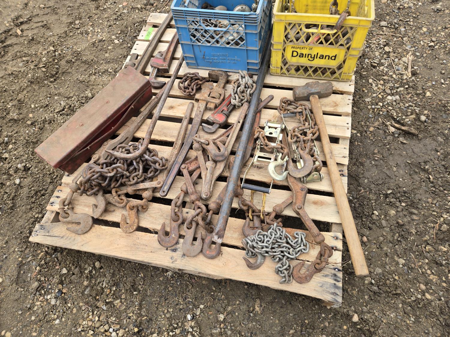 1891 Qty of Chains, Boomers, Pipe Wrenches & Clevises