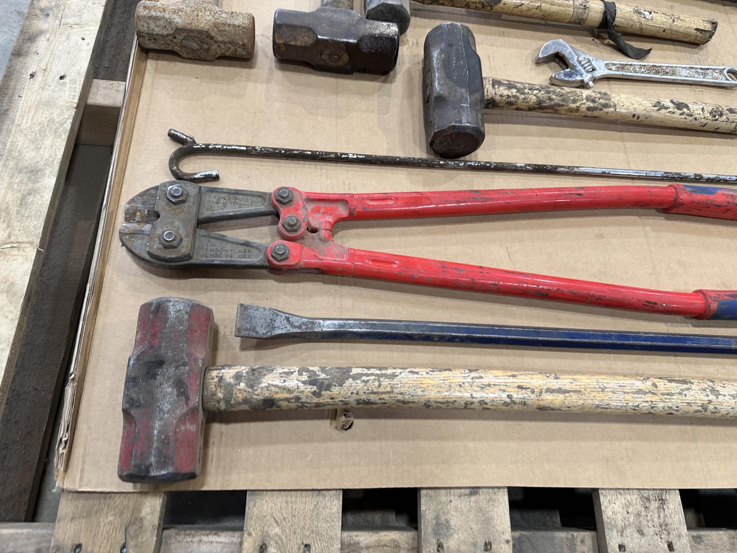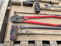 Sledge hammers, pry bar, bolt cutters, 5TH wheel pin puller, crescent wrench and caulking gun