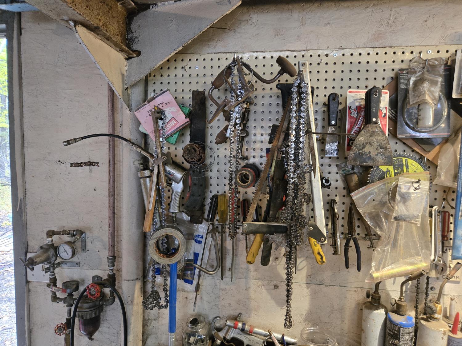 chain saw chain, torches, hardware, miscellaneous items