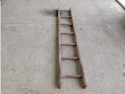 (2) vintage metal pails, grain shovel, rake, wooden ladder, Bissell mini vacuum, (3) three step metal stair stringers, storage boxes