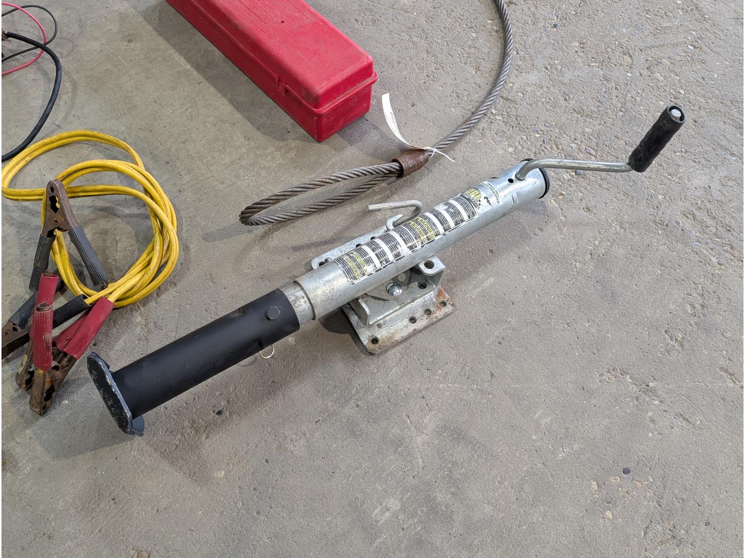 6 ft cable sling, triangle warning flares, 1500 lb trailer jack, (3) ball hitches