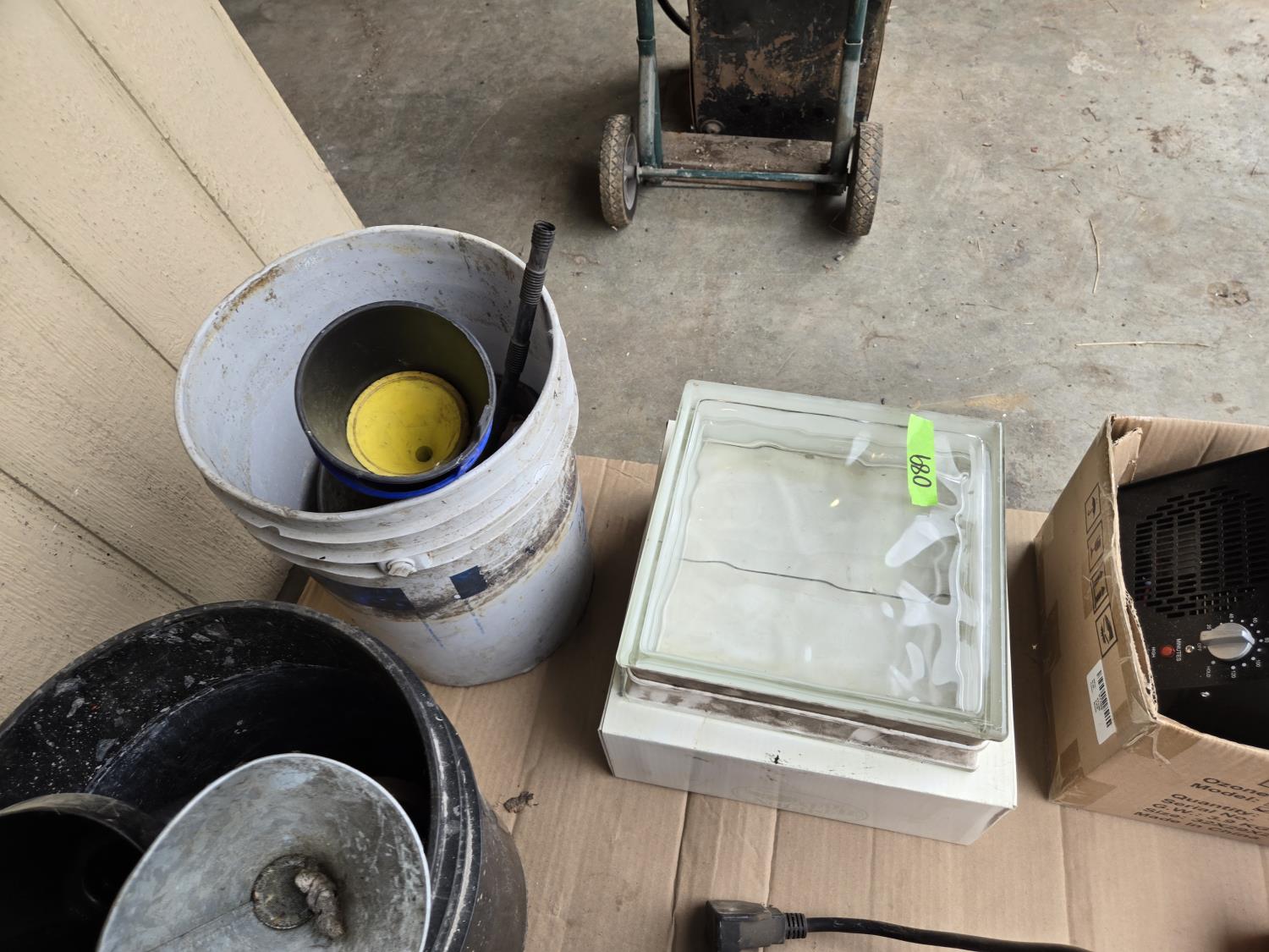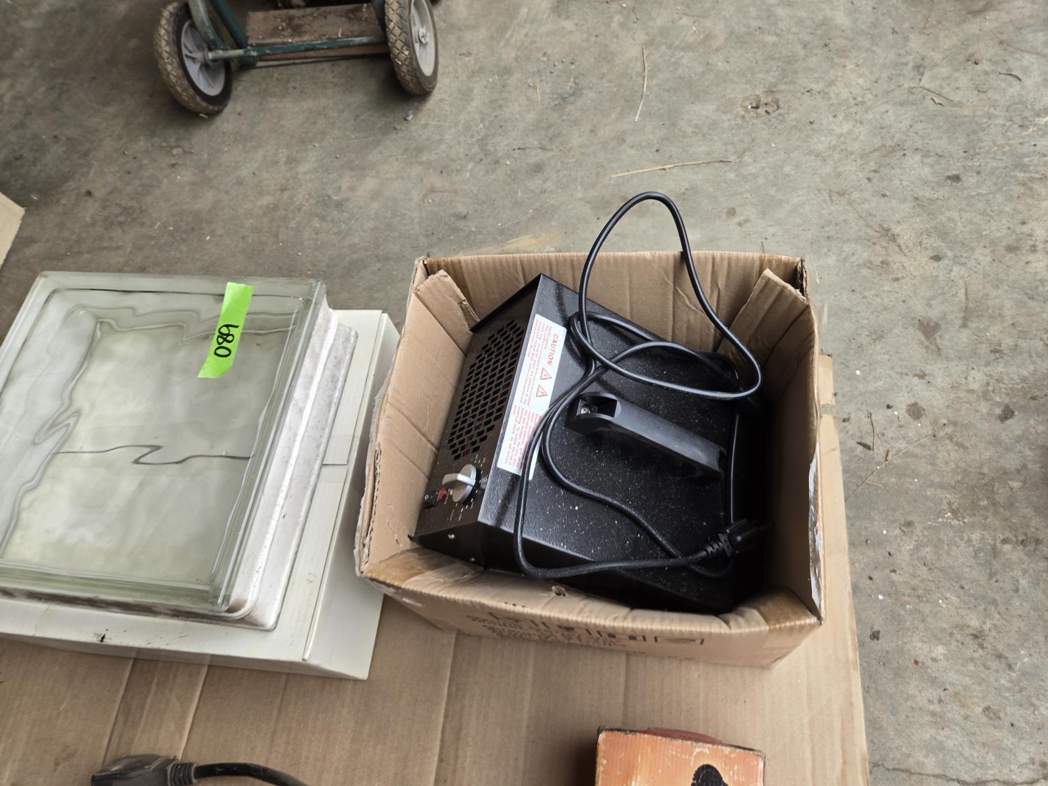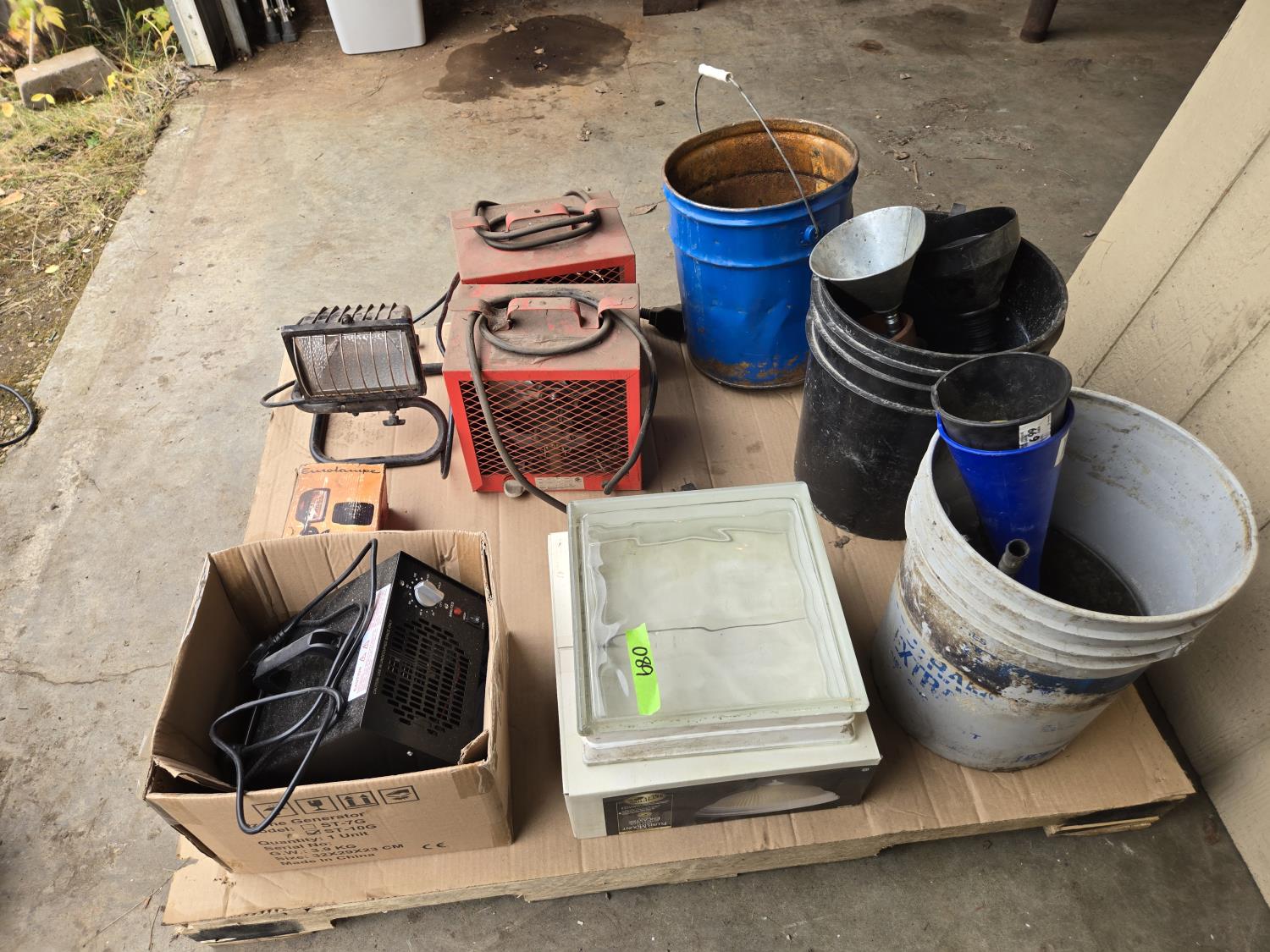 (2) 220 Volt heaters, ozone generator, lights, funnels, glass block