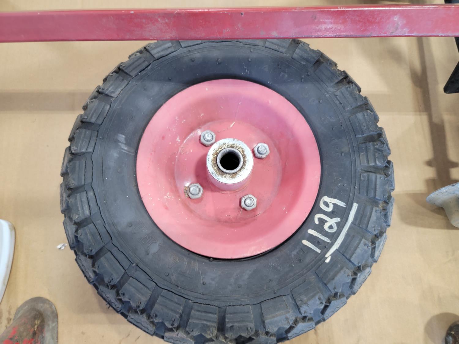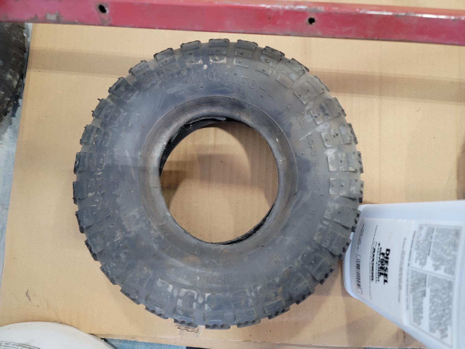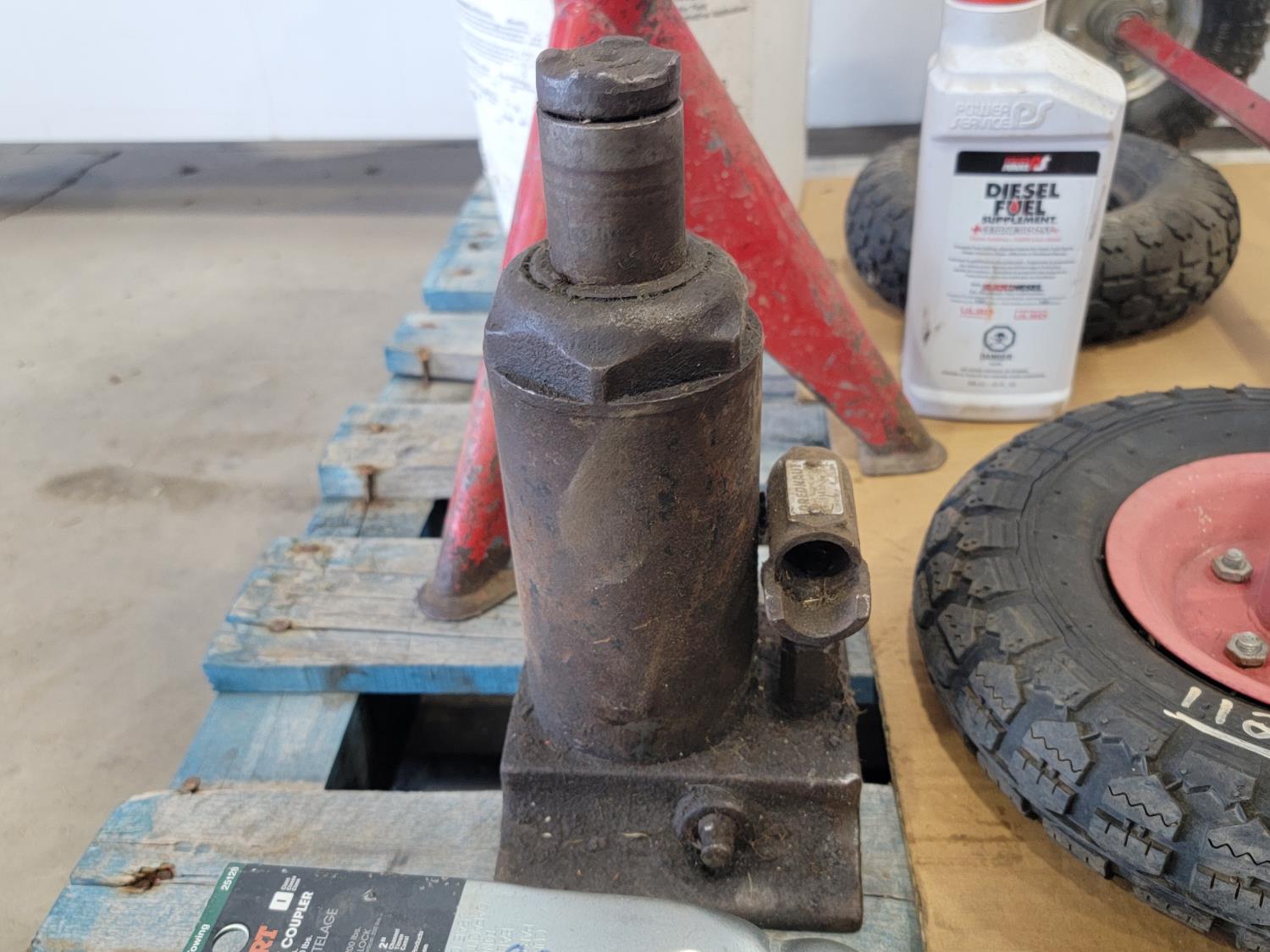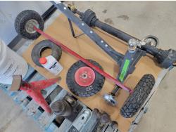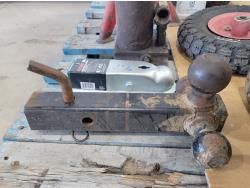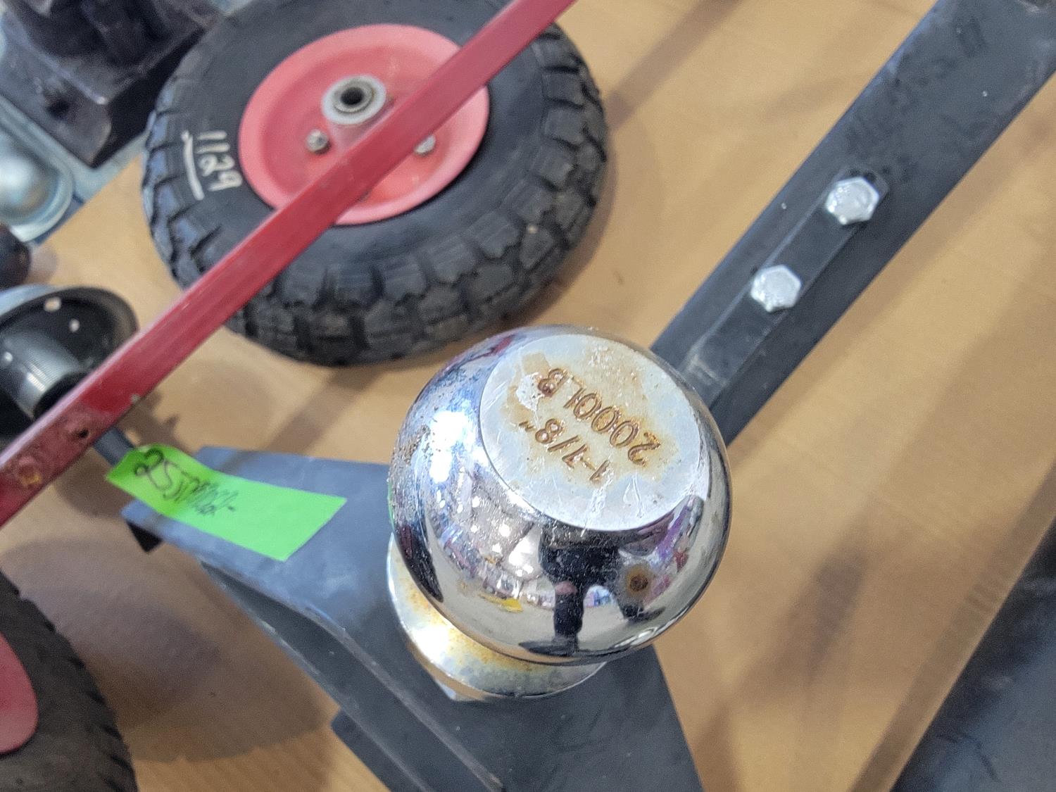 Tri-ball hitch, Curt trailer coupler, bottle jack, jack stand, chain, utility tires, trailer dolly,