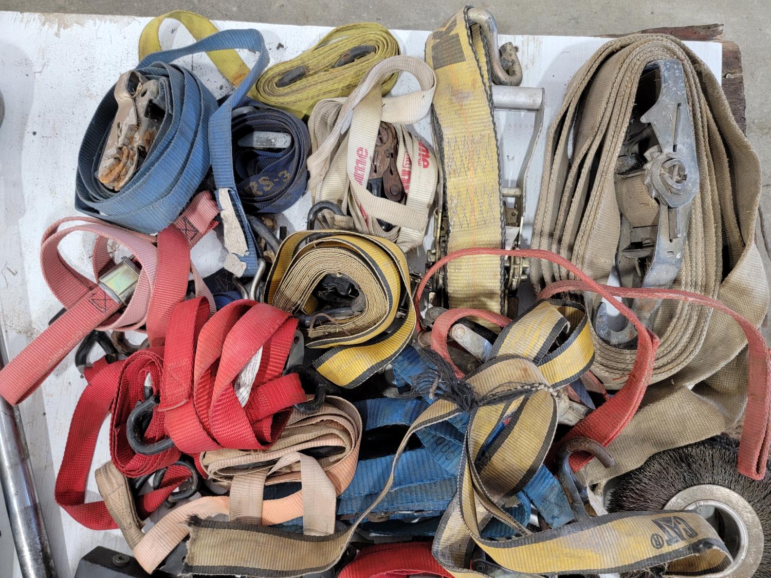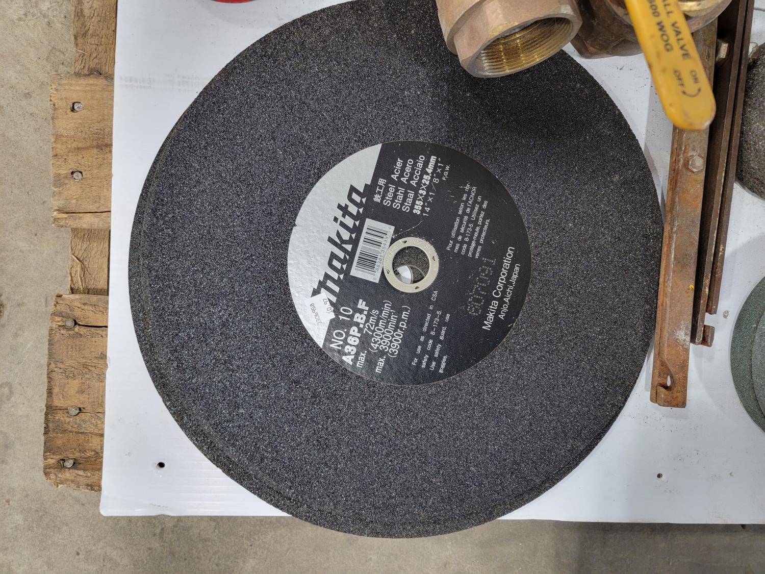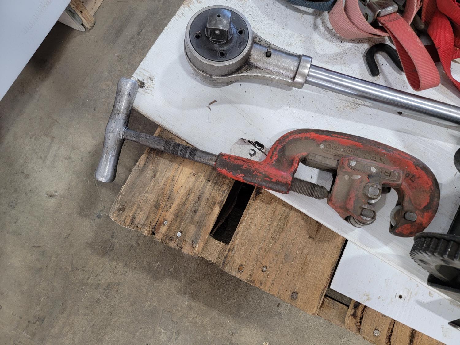 Bench grinding wheels, (2) cut off wheels, ratchet straps, ball valves, pipe cutter