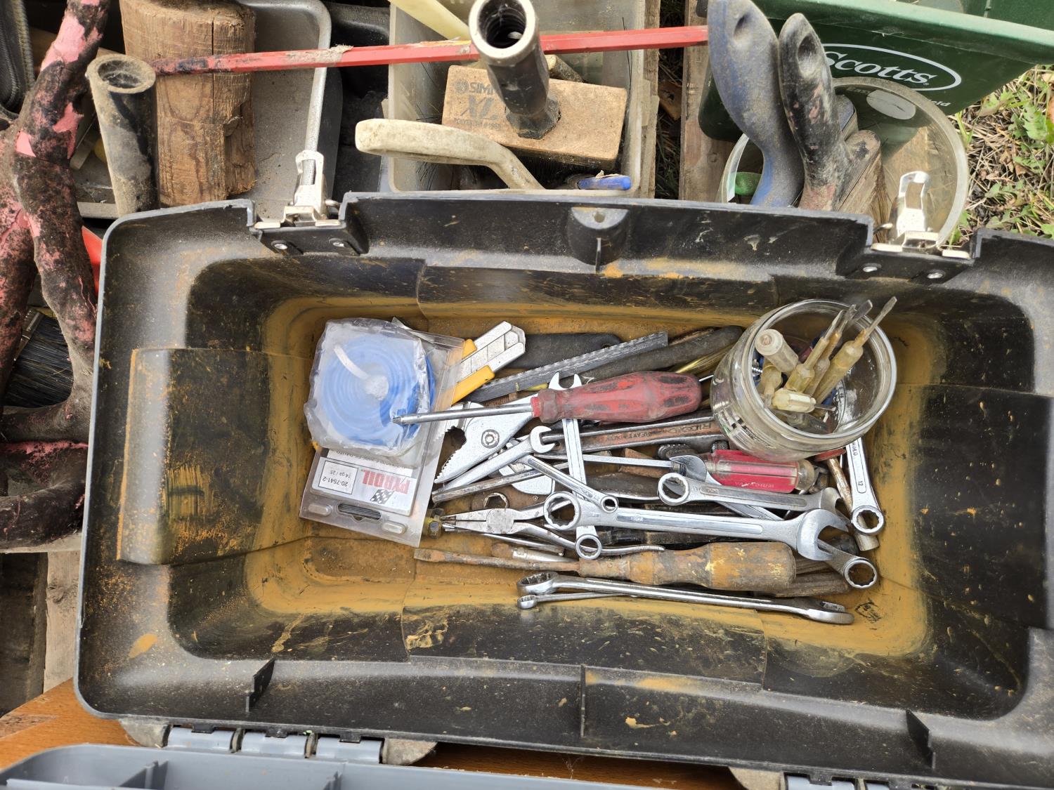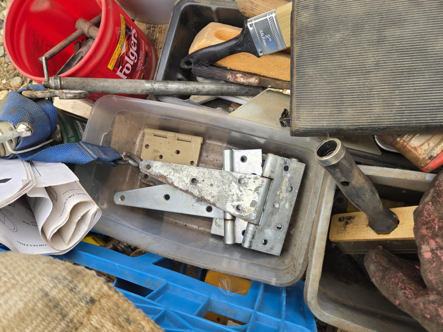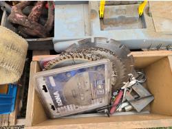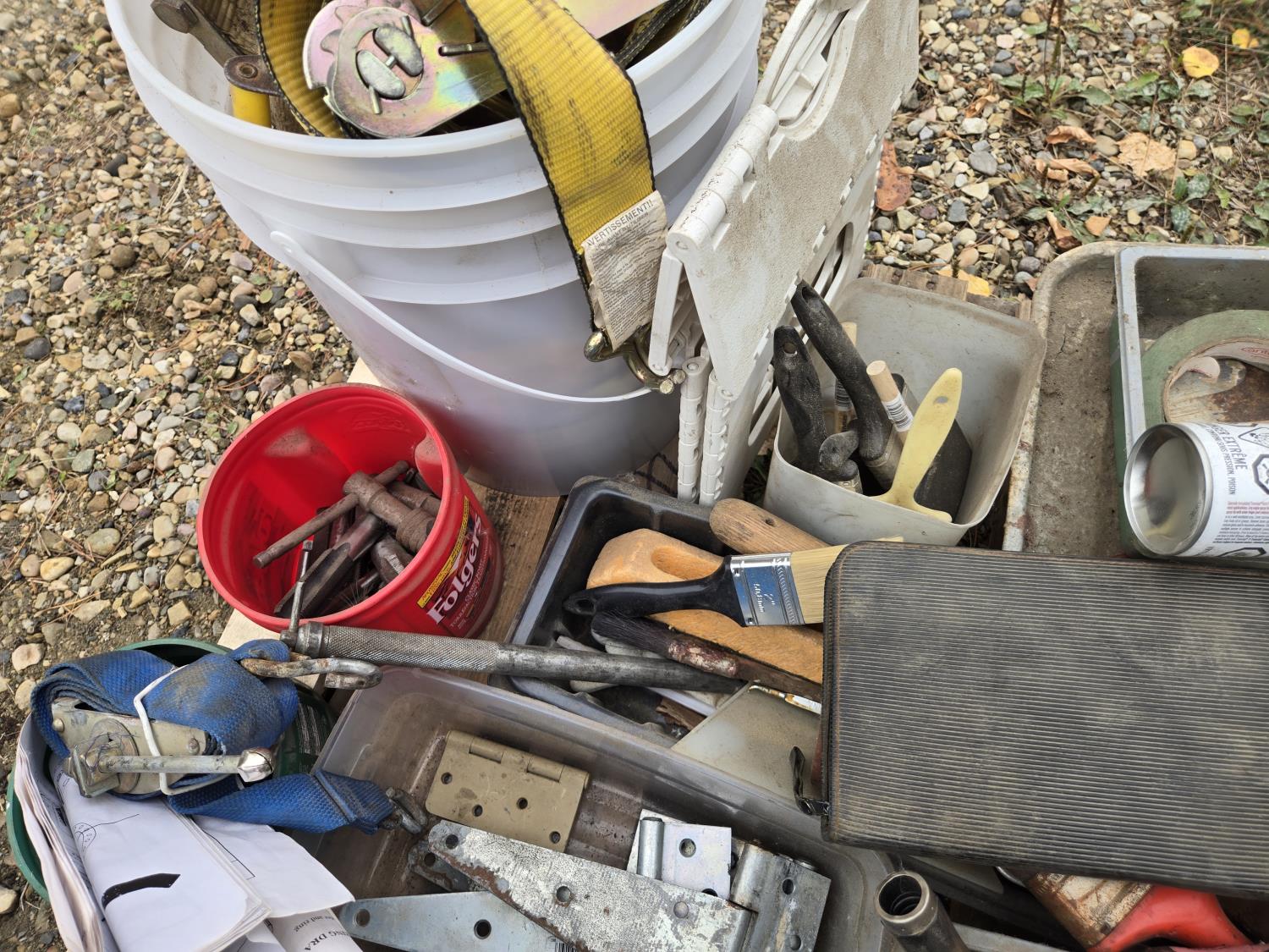 ratchet straps, Paint supplies, saw blades, miscellaneous items