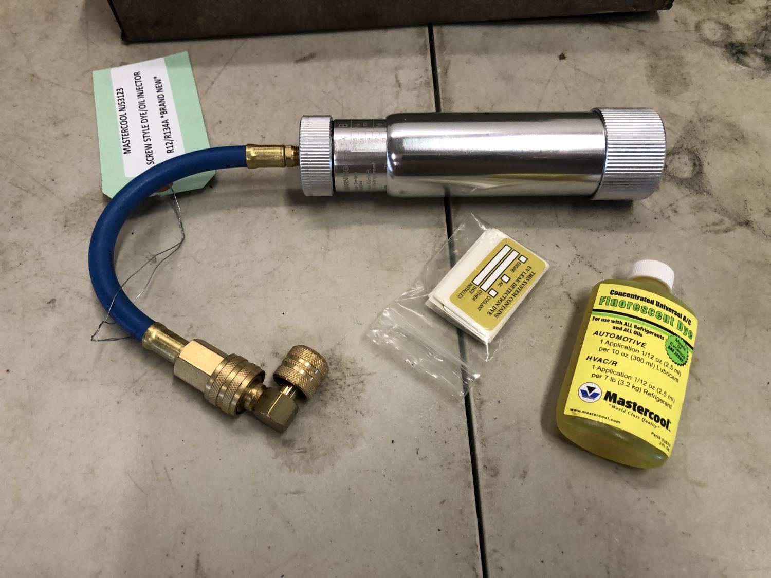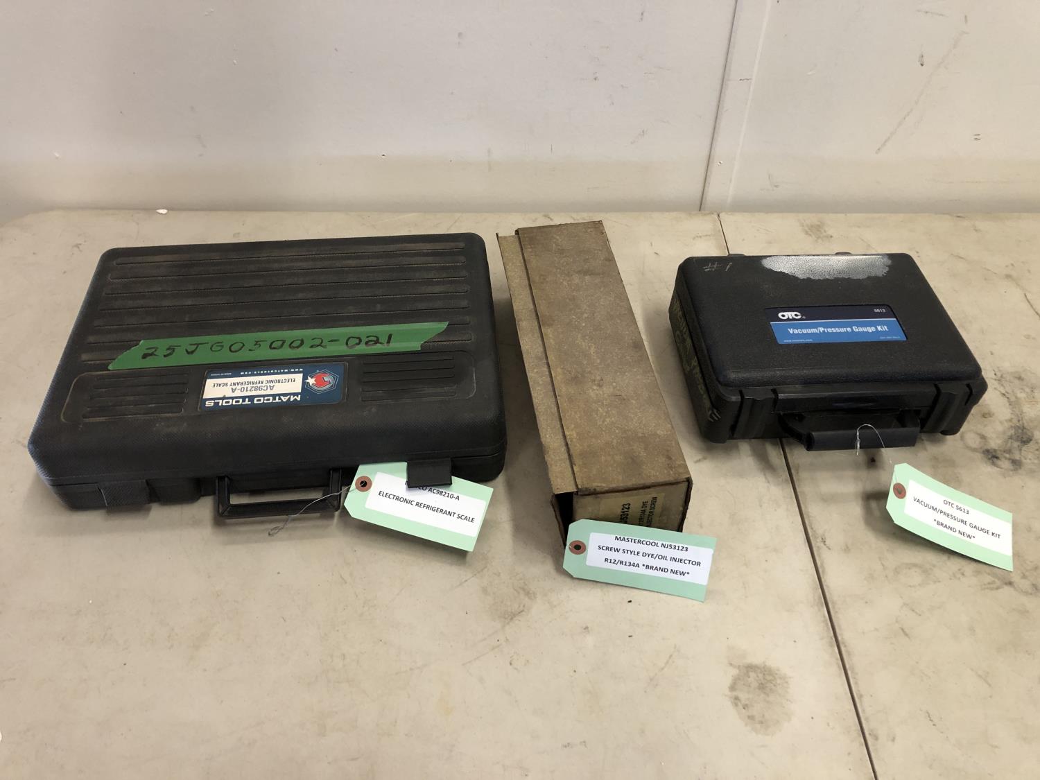 Matco AC98210-a Electronic Refrigerant, Master Cool NI53123 screw style dye injector, OTC vacuum/pressure tester kit (unused)