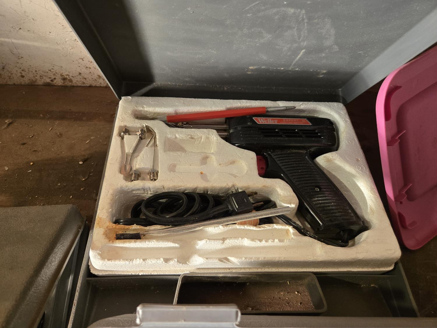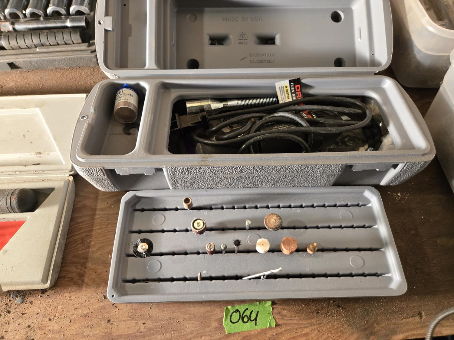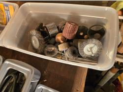 socket sets, soldering iron, Dremel kit, screwdrivers, wire brushes, miscellaneous items