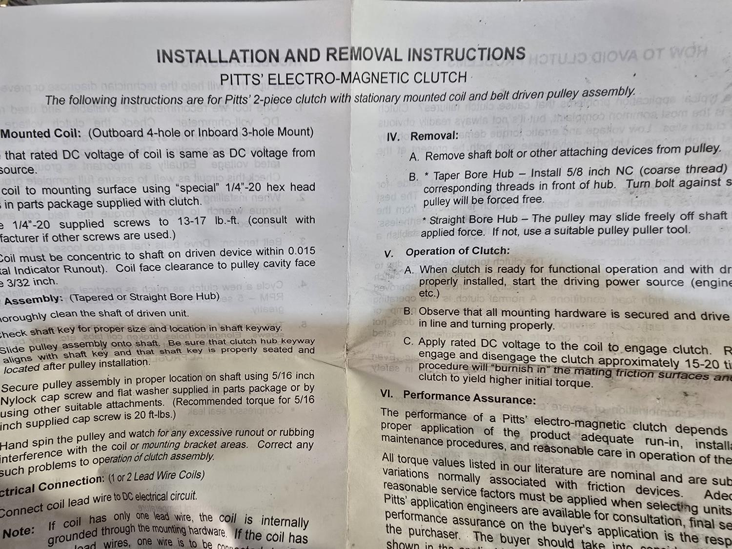 Paddle latches, head lamps, hub cap gaskets, V-belts, Pitts' electro-magnetic clutch, PTO pump valve,