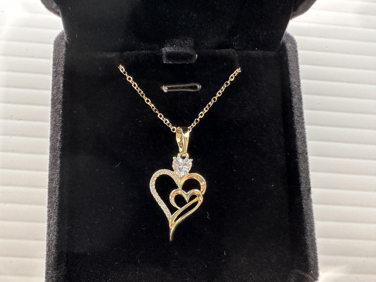 1607 Smartlife 14K Gold Plated 0.5 Ct Heart Cut Double Heart Necklace (Unused)
