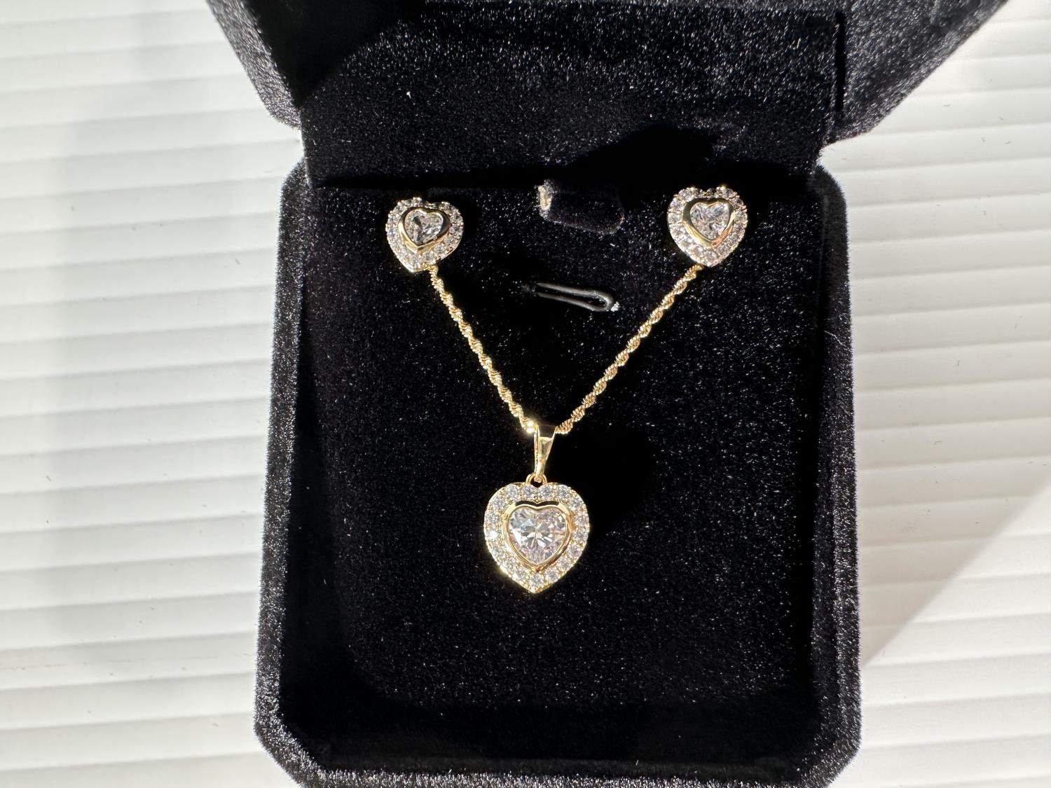 1605 Smartlife 14K Gold Plated 1.0 Ct Heart Cut 2 Piece Halo Set (Unused)