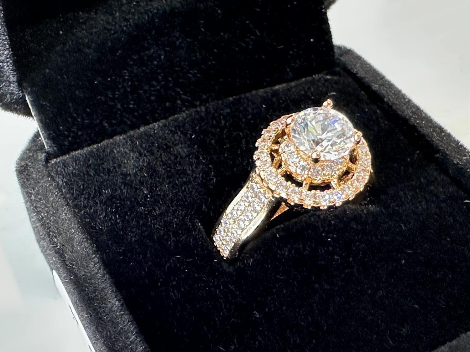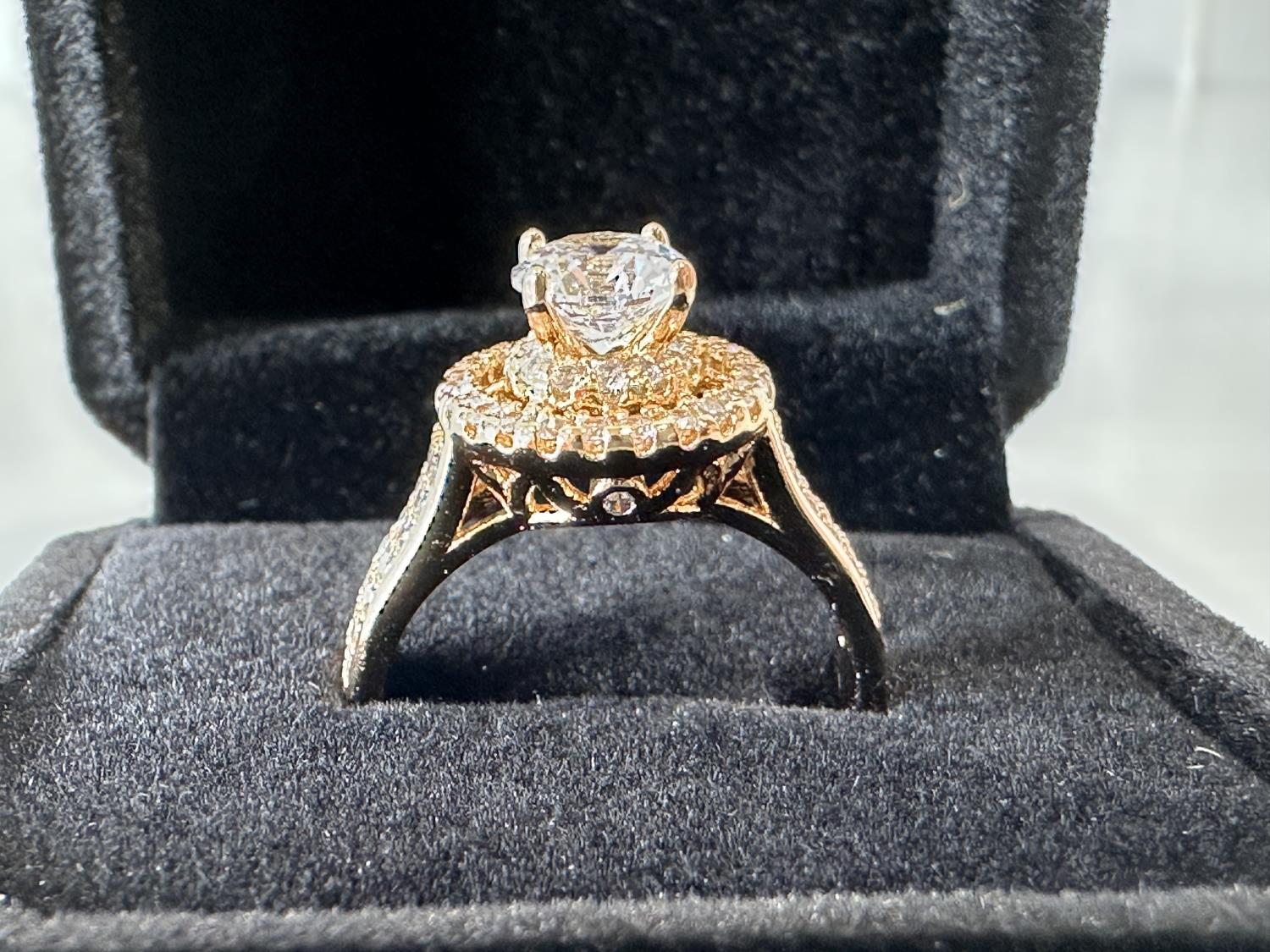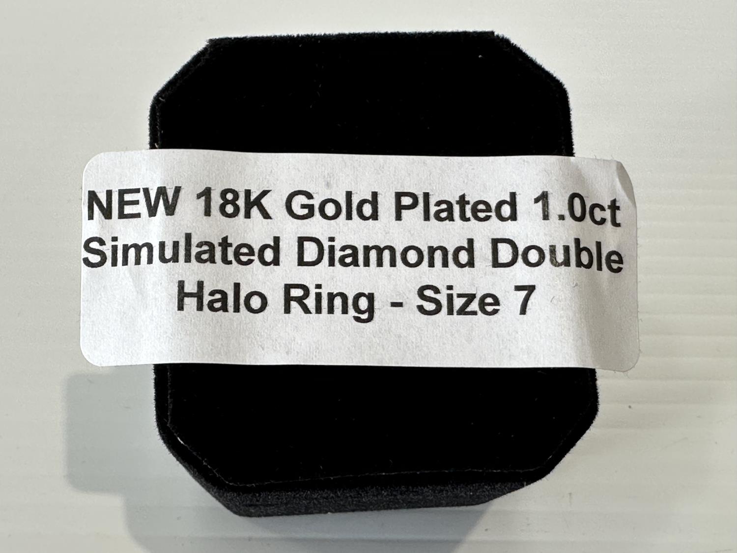 1597 Smartlife 18K Gold Plated 1.0 Ct Size 7 Double Halo Ring (Unused)