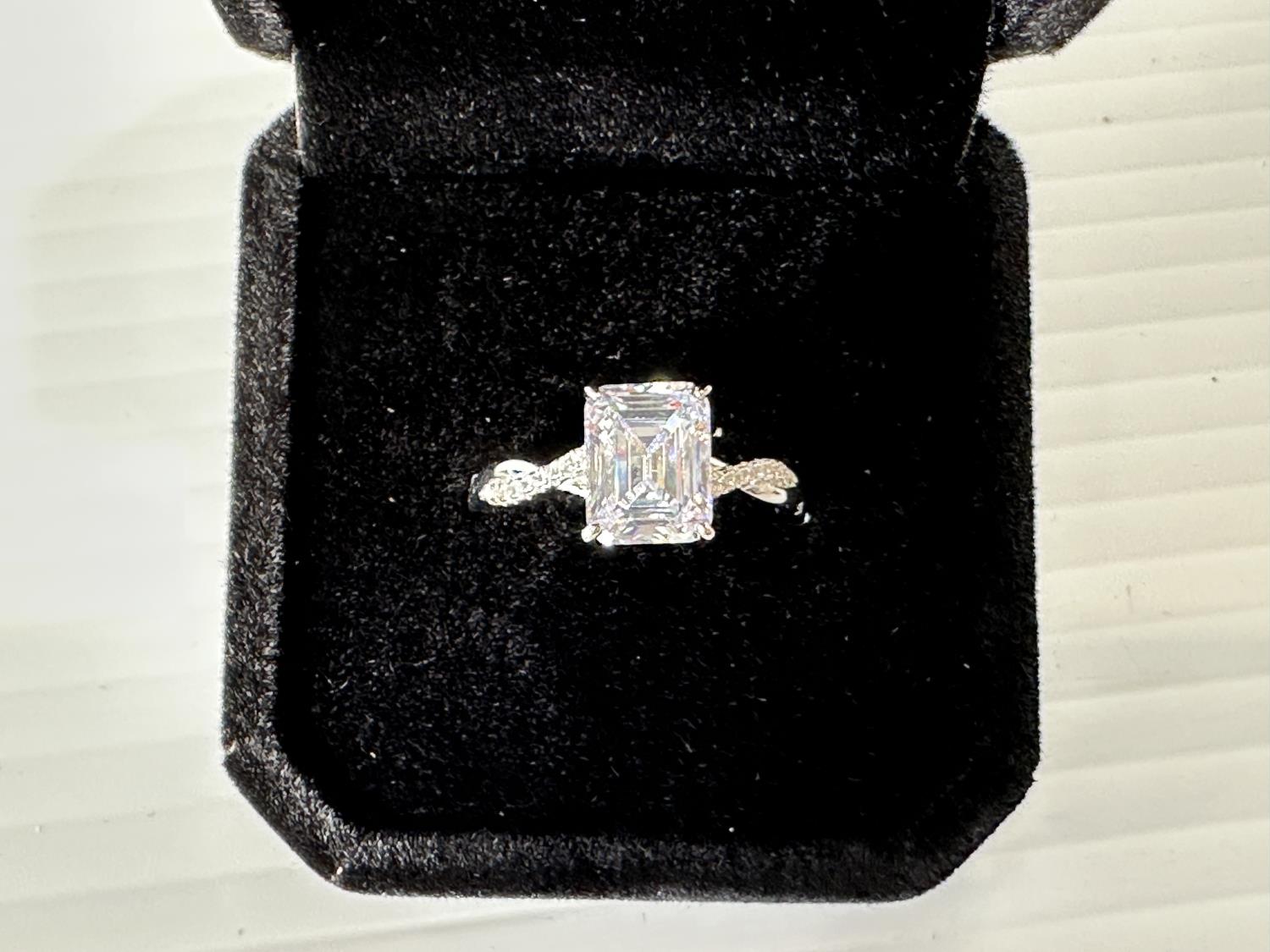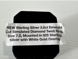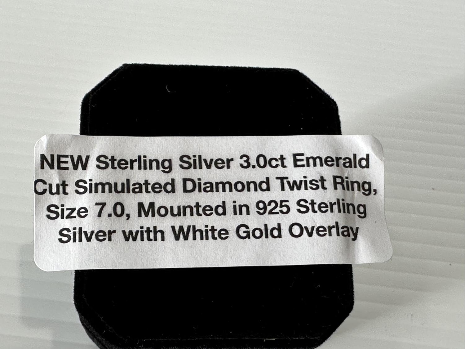 Smartlife Sterling Silver 3.0 Ct Emerald Cut Size 7 Twist Ring (Unused)