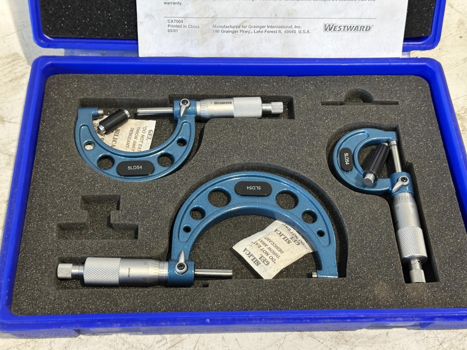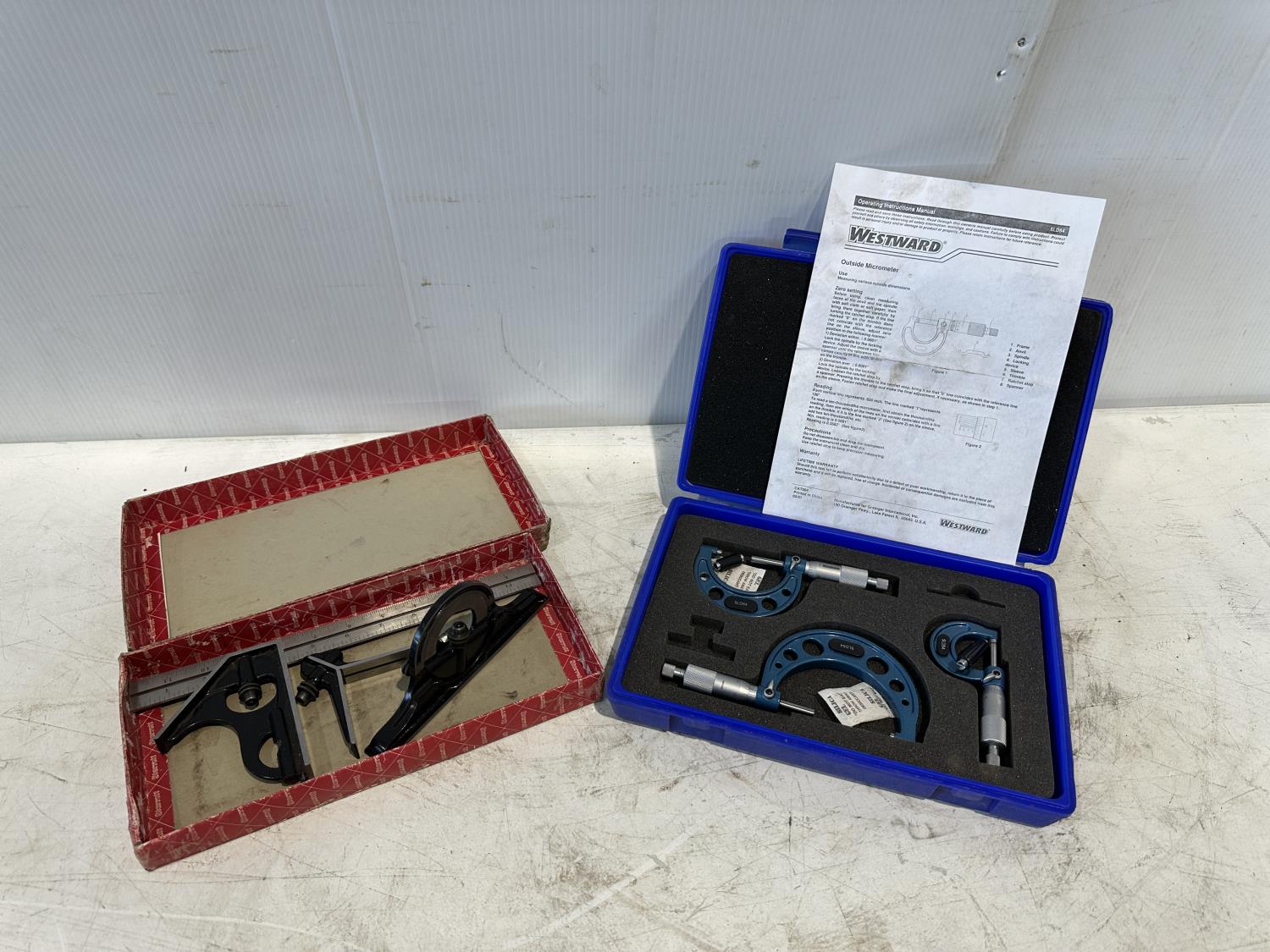 1051 Starrett Straight Edges and Westward 3 Piece Outside Micrometer