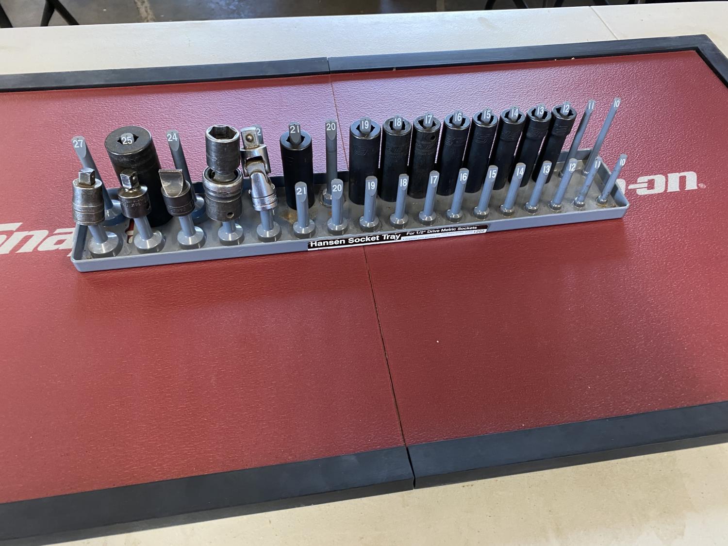 1289 Snap-on 1/2 Inch Drive Metric Deep Sockets w/ Socket Tray