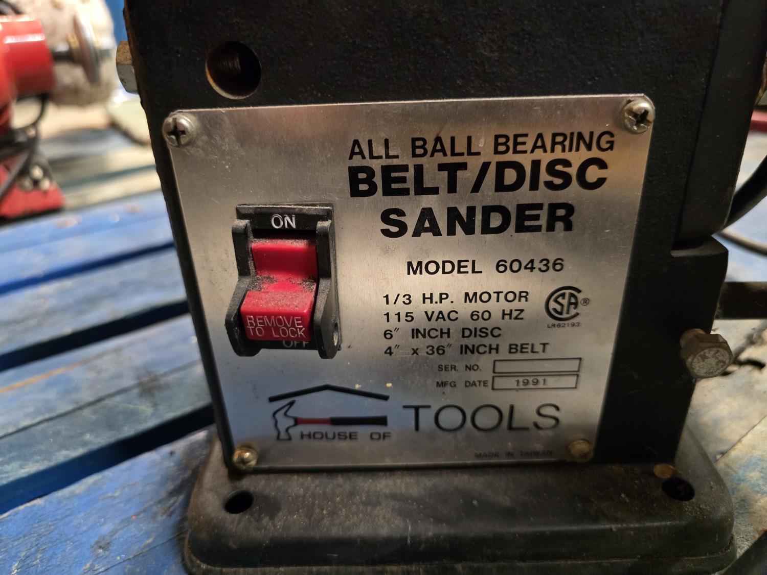 1655 1991 House of Tools 60436 4 Inch Belt / 6 Inch Disc Sander