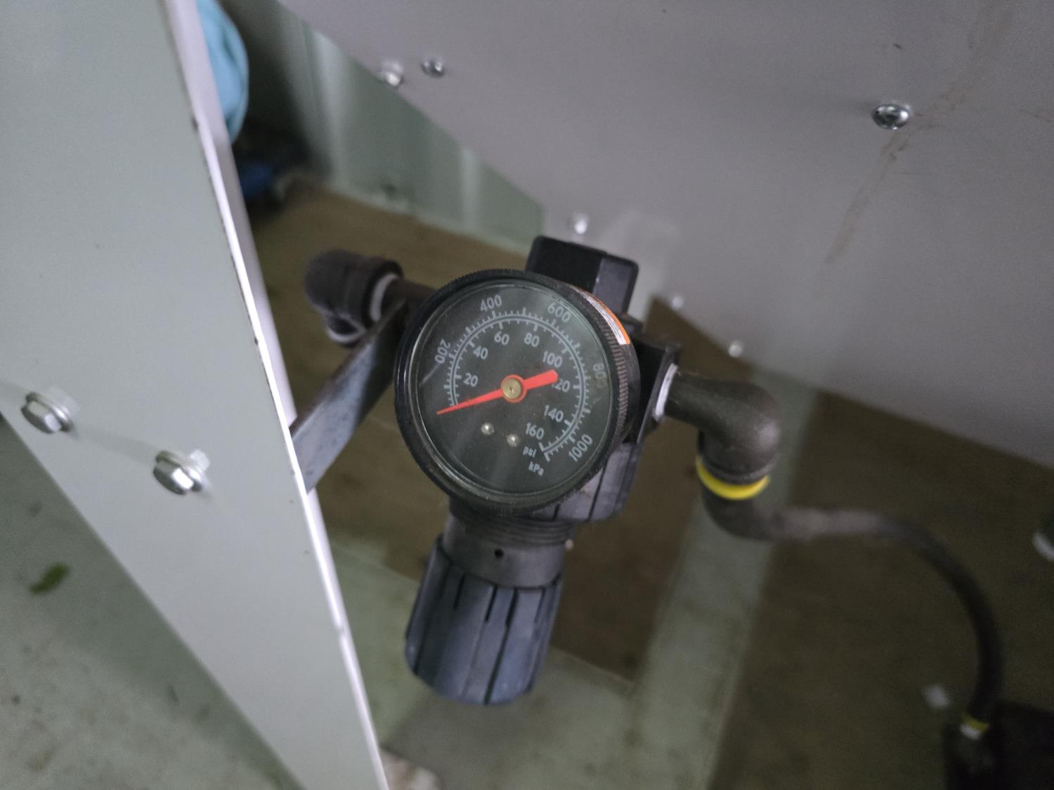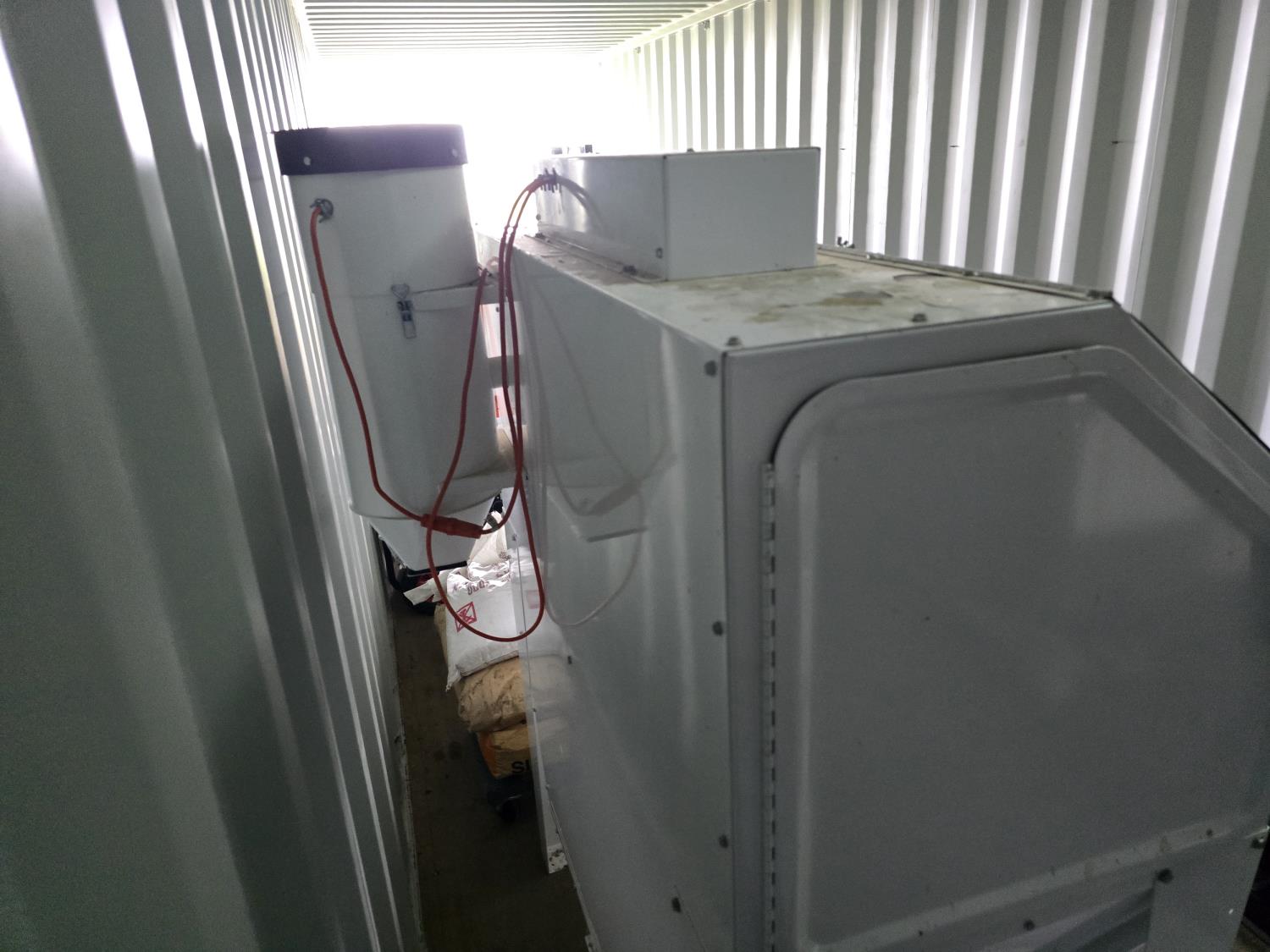 180v single phase input, 48 inch L x 24 inch W x 60 inch T, includes qty of blasting sand.