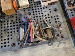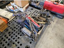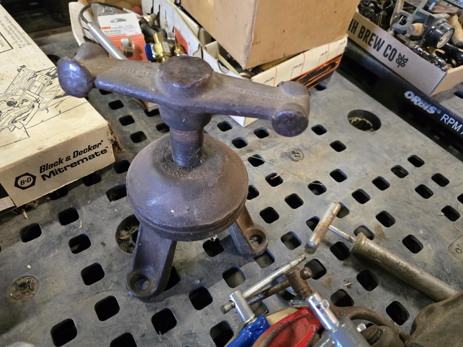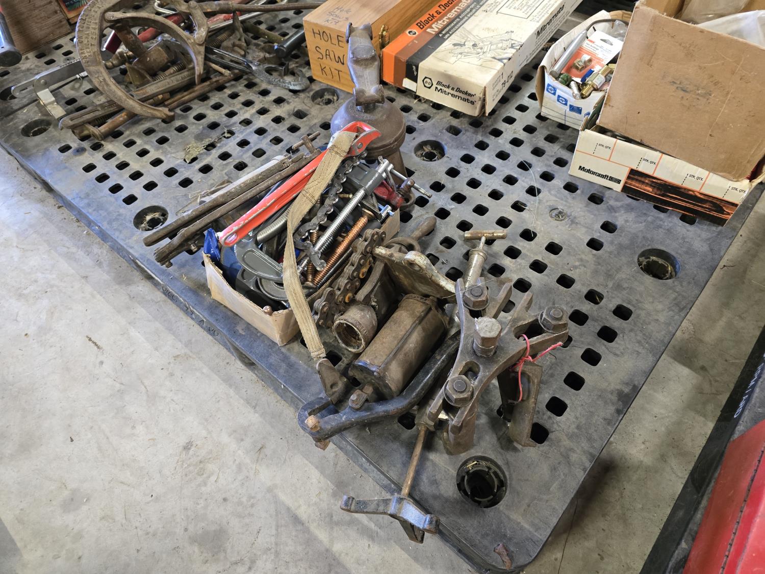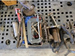 1672 Antique Hub Puller w/ Misc Clamps and Chain Vises