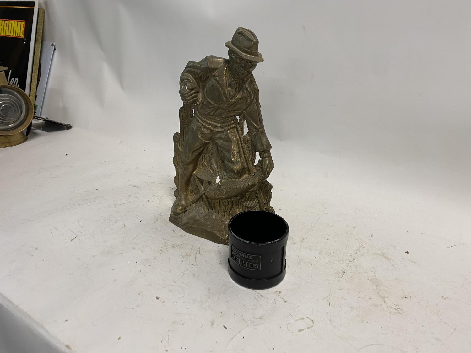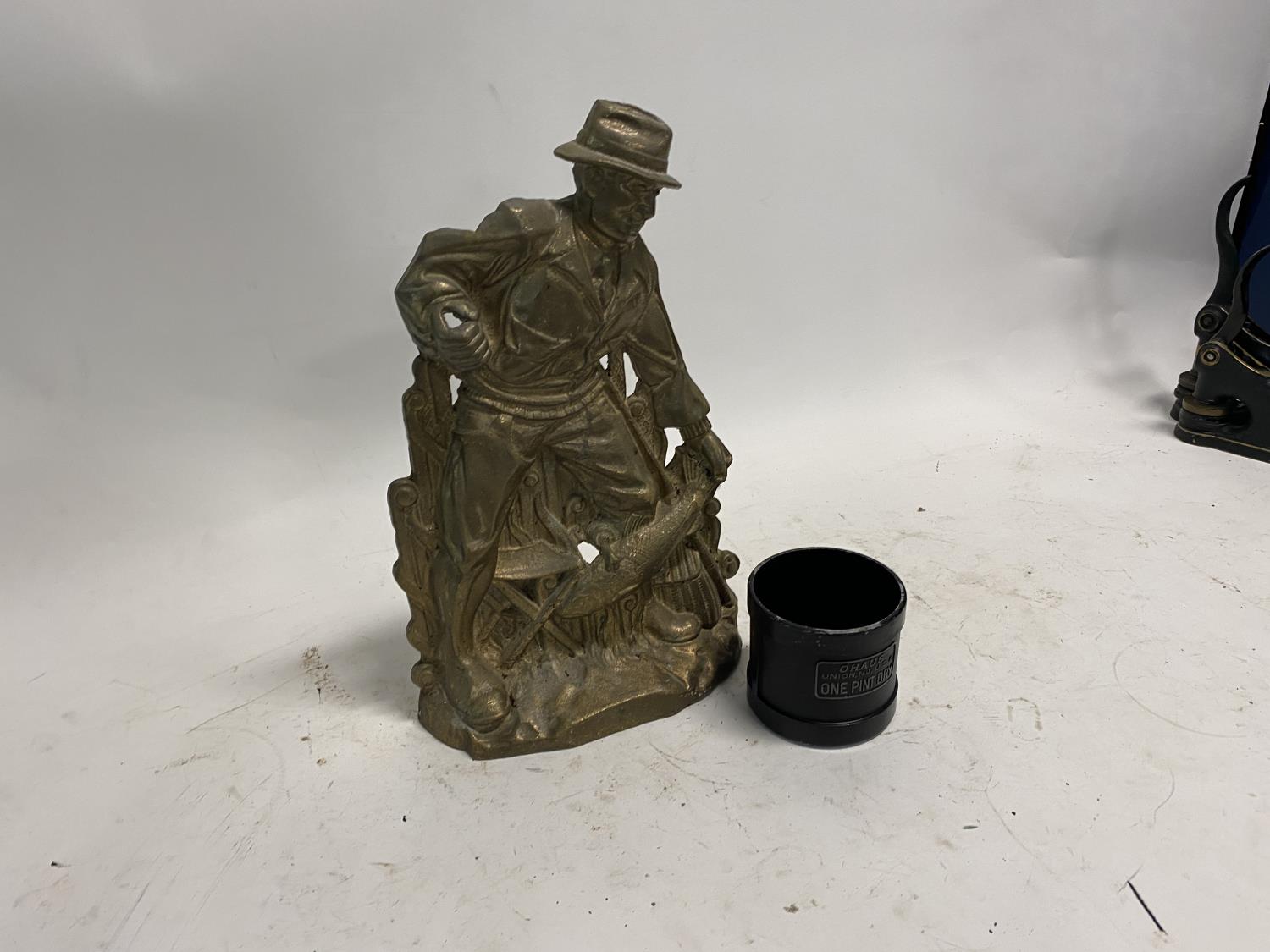 2577 Brass Fisherman Figurine w/ One-Pint Dry Measuring Cup Model