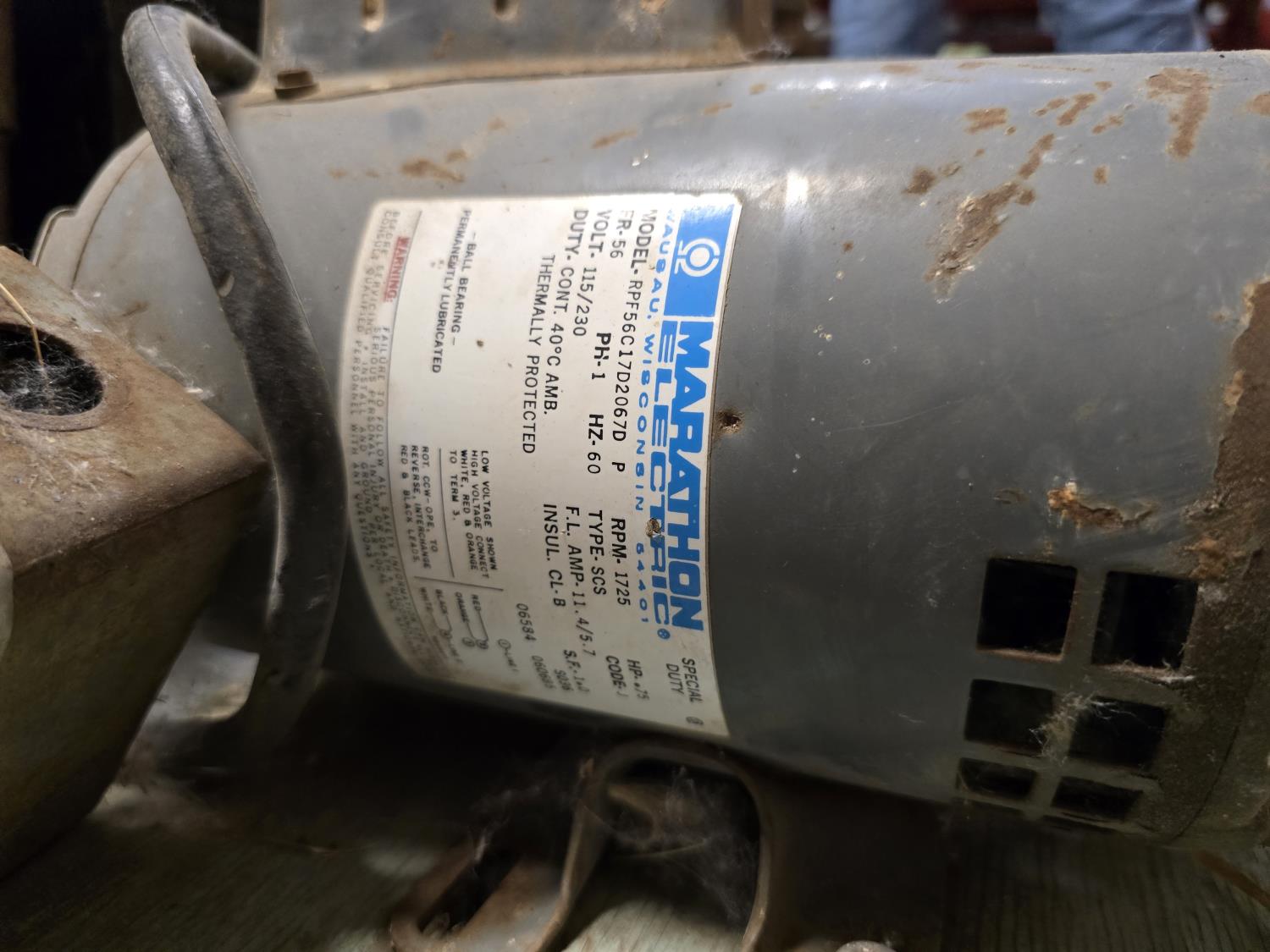 0.75 HP Marathon electric motor, single phase, 115/230 V,