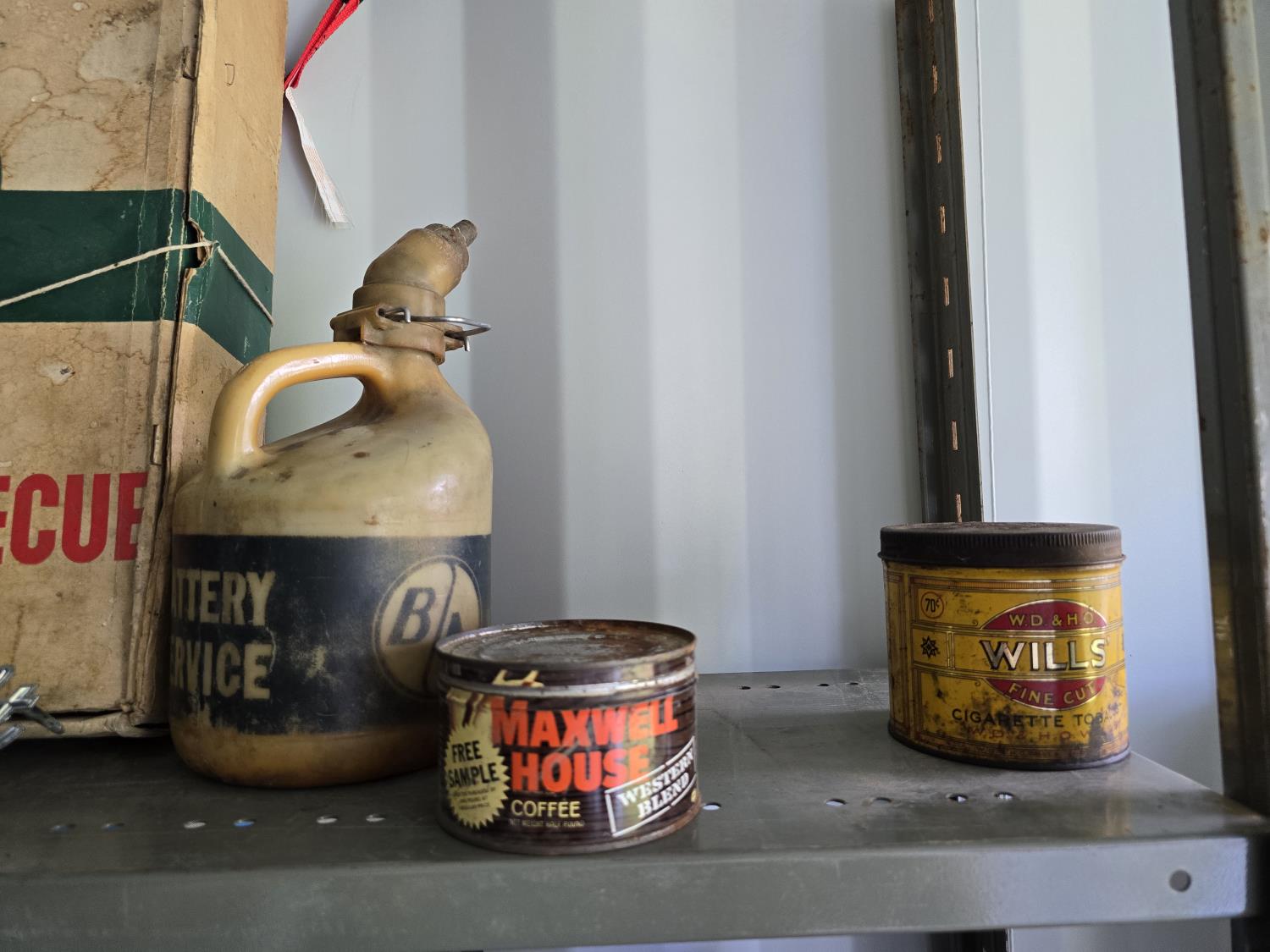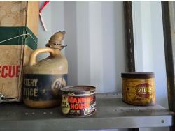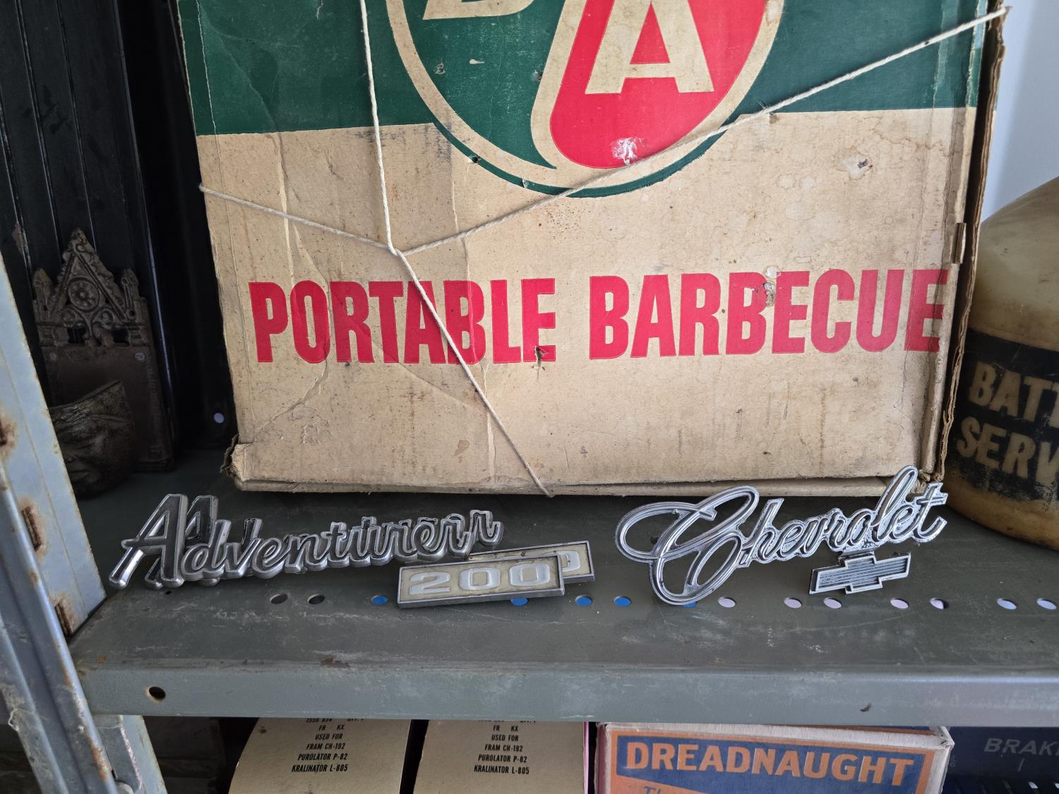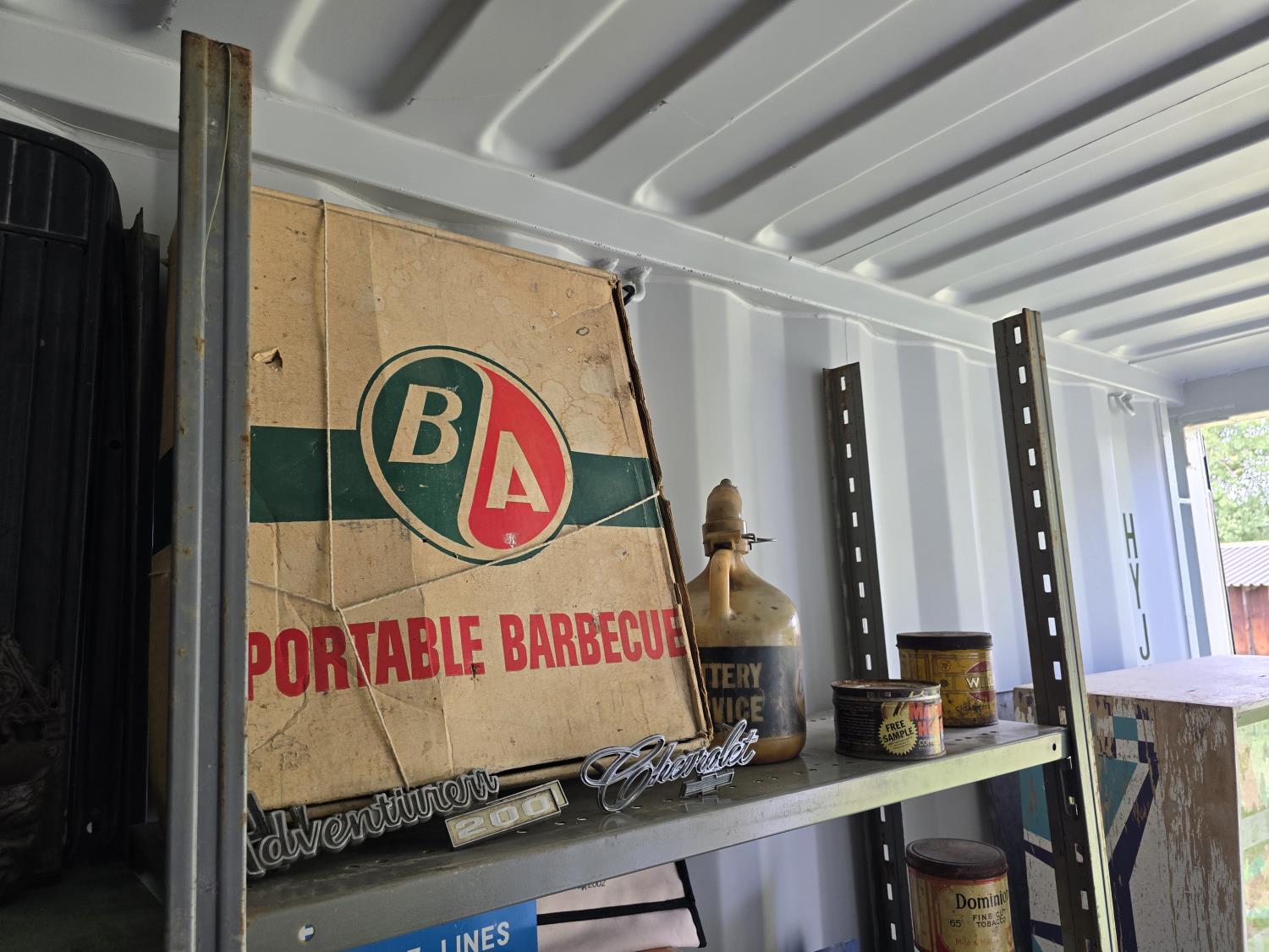 2268 Portable Barbeque w/ Misc Vintage Badges & Containers