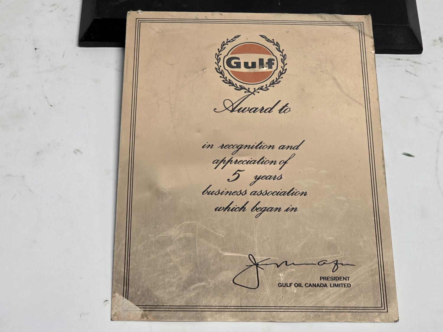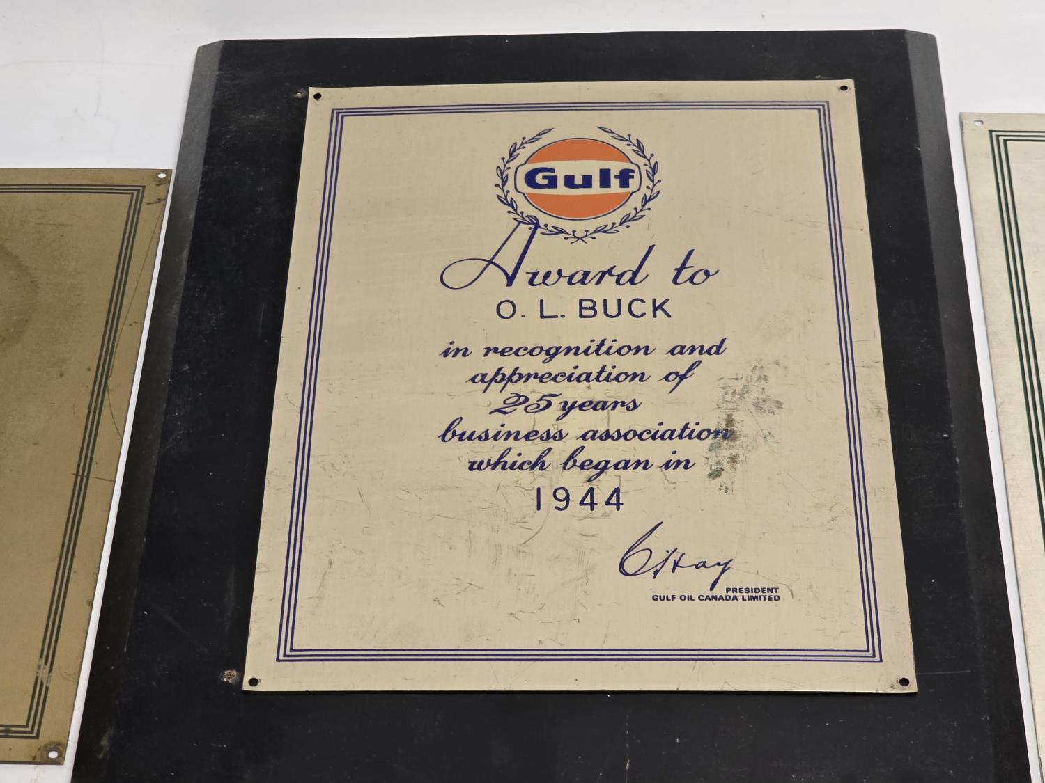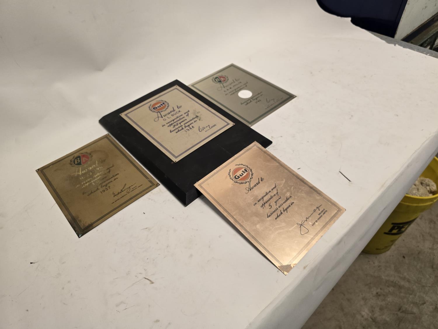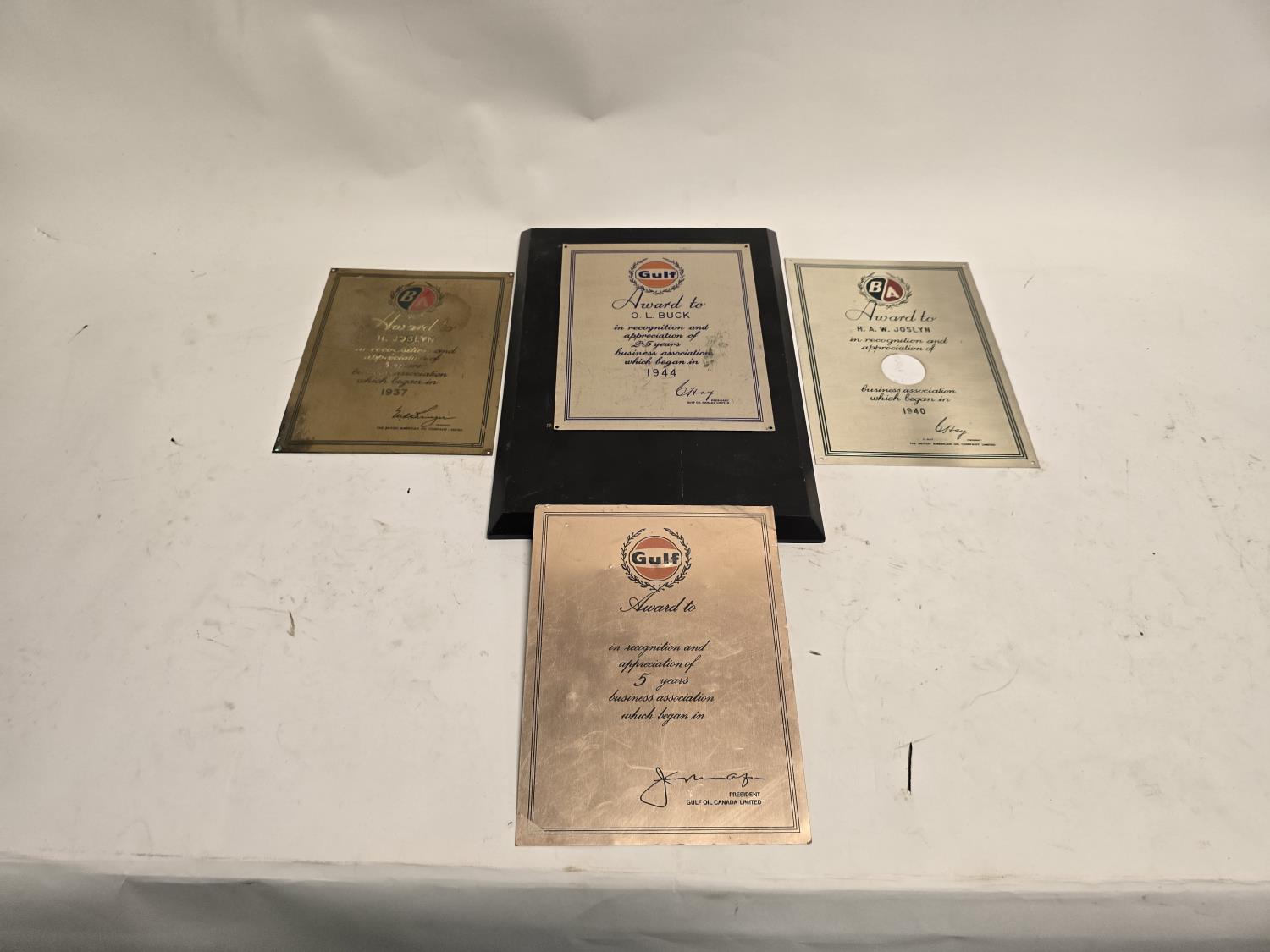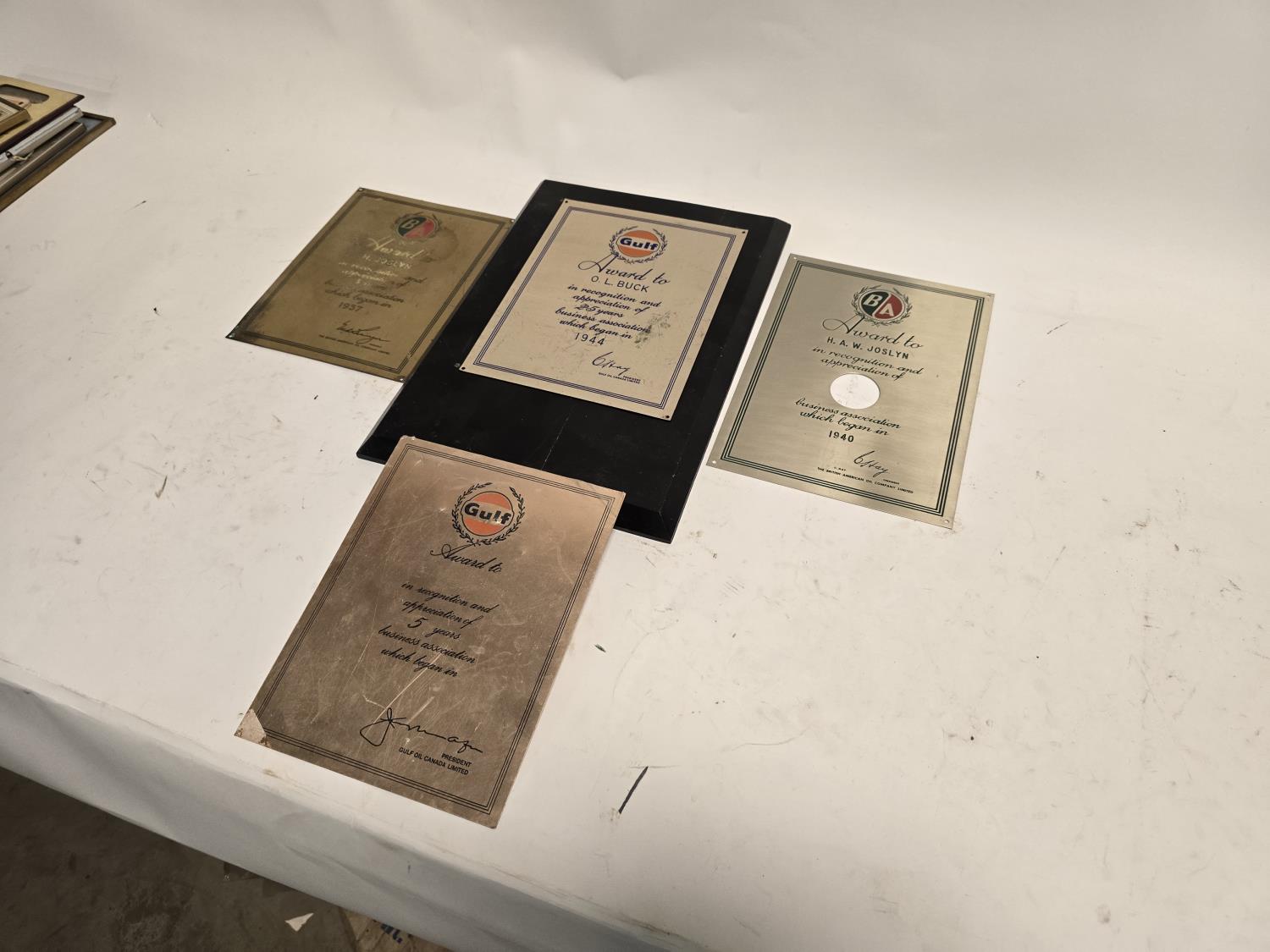 2470 Qty of (2) Gulf Metal Plaques W/ (2) British American Oil Co. Metal Plaques