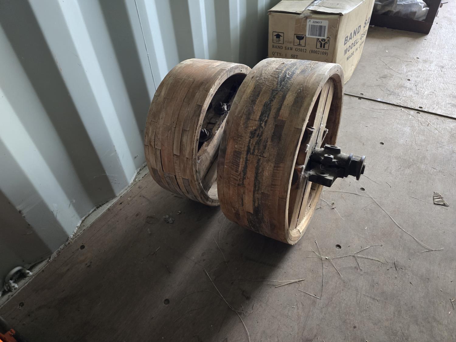 1918 Qty of (2) Wooden Flat Belt Pulley's
