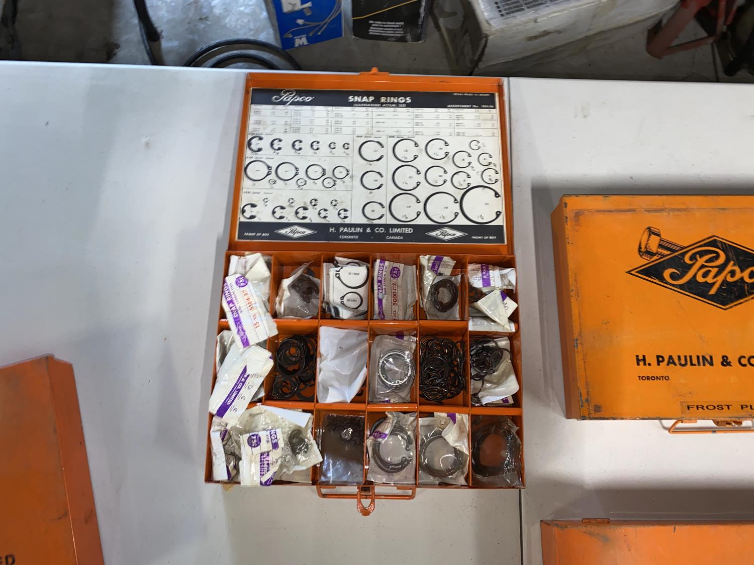 (1) Box of Socket Set Screws, (1) Box of Woodruff Keys, (1) Box of Frost Plugs, (1) Box of Snap Rings