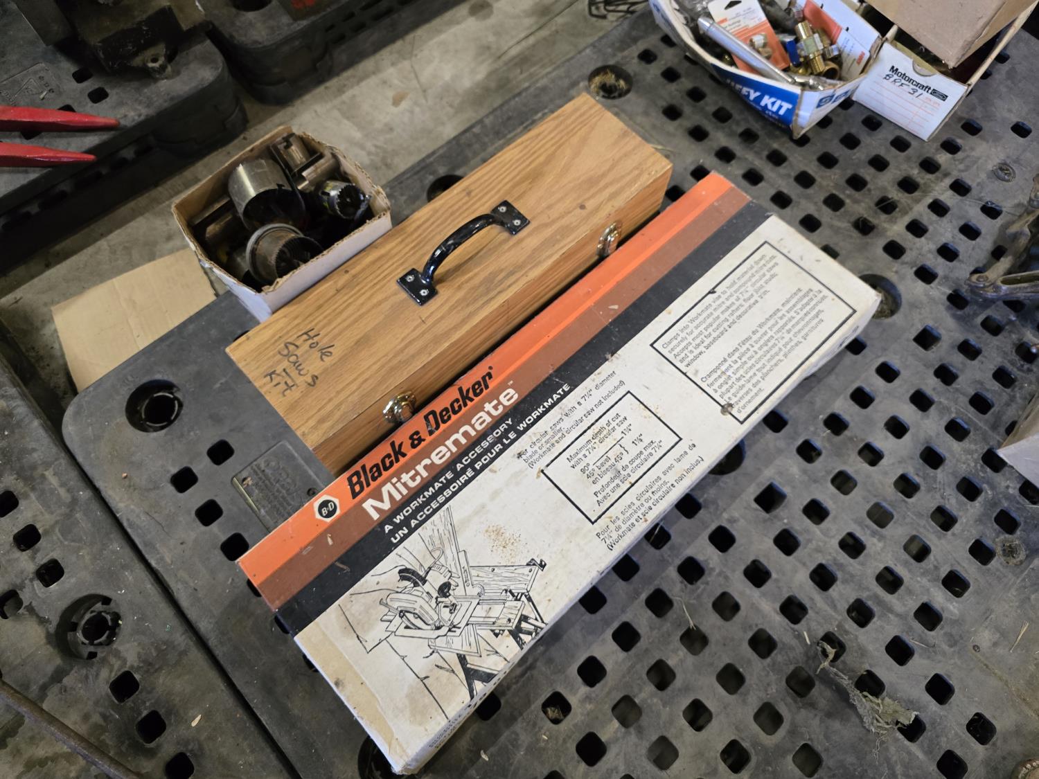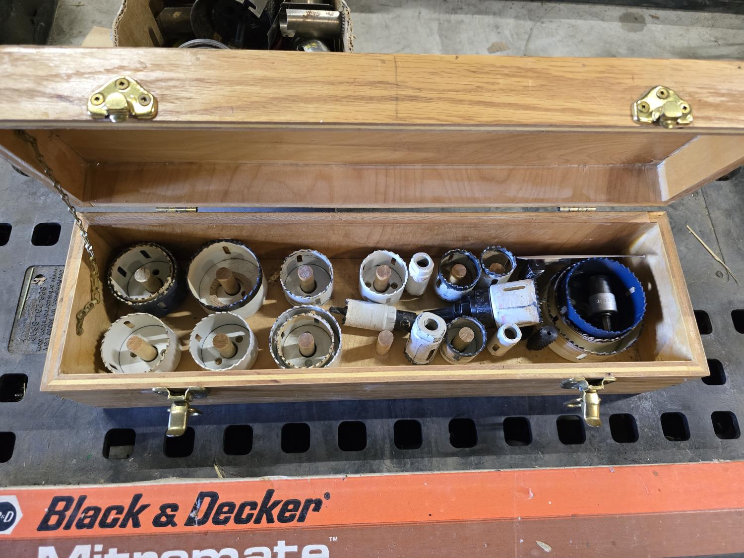 1673 Qty of Misc Hole Saw Bits w/ Black & Decker Mitremate