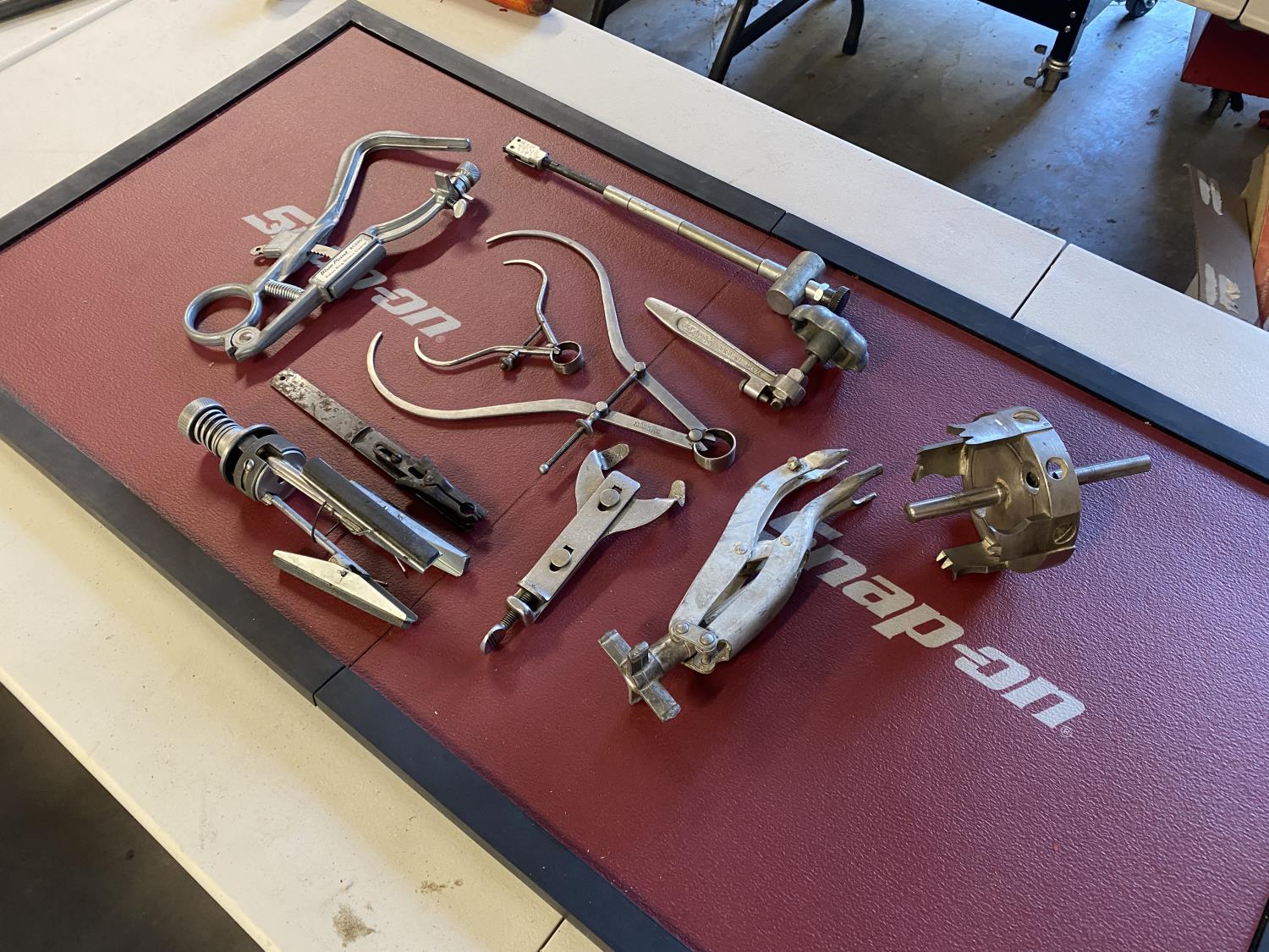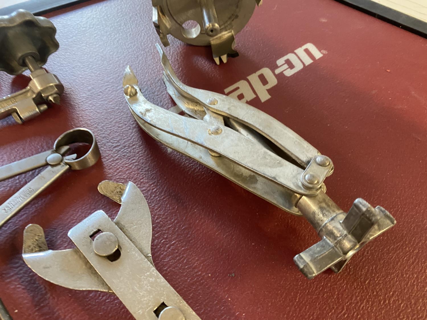 Spring calipers, piston groove cleaner, valve clearance adjuster tool