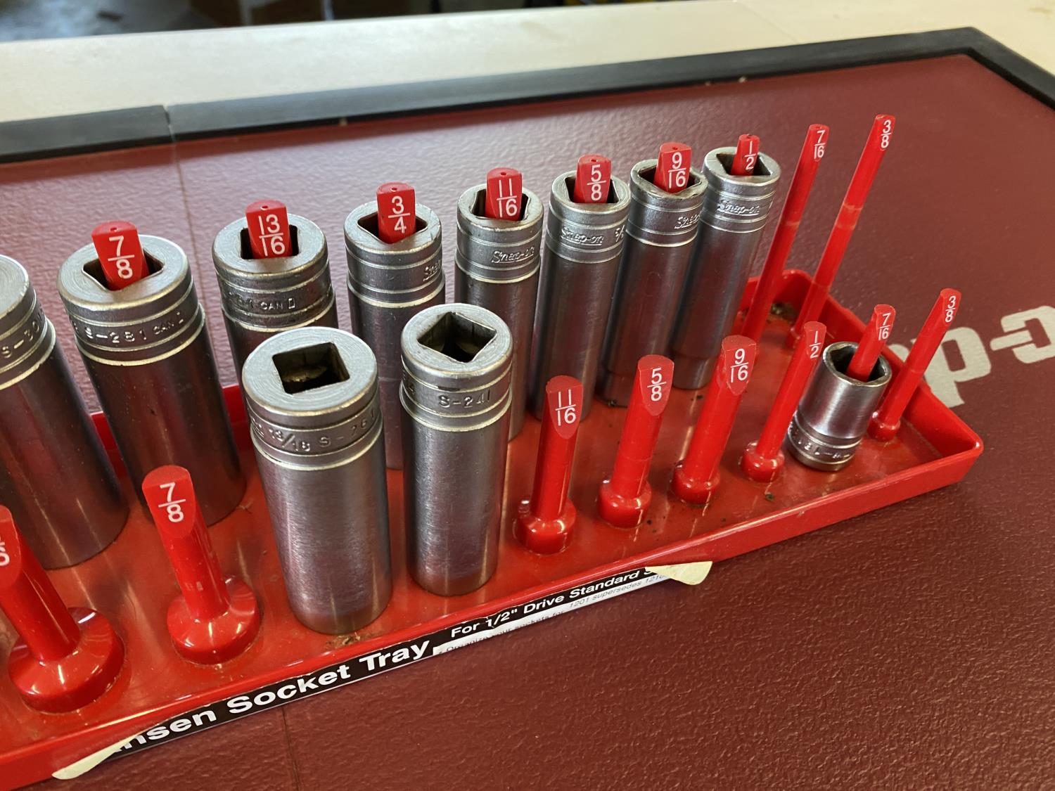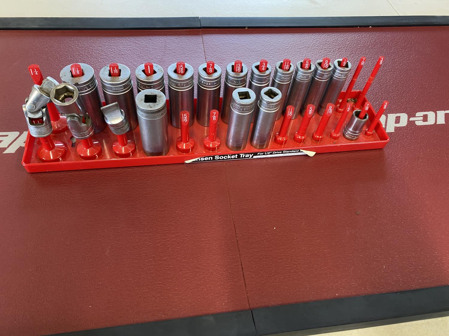 1290 Snap-on 1/2 Inch Drive SAE Deep Sockets w/ Socket Tray