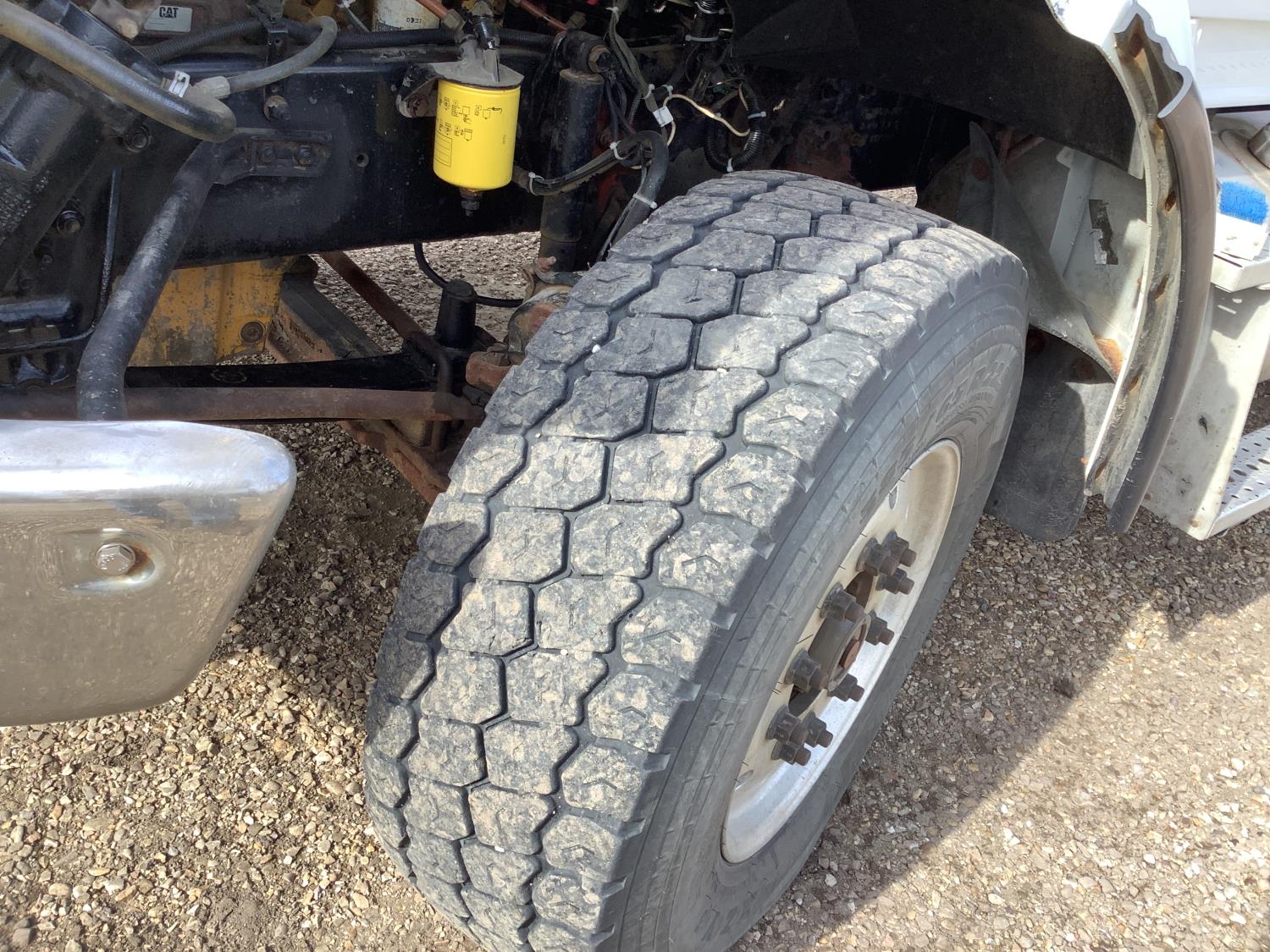 Cat C13 twin turbo 500 HP engine, engine brake, 18 speed manual transmission, AC, PW, PL, air ride cab, hydraulic system, rear hitch, rear hydraulic lines, head rack, 16,000 lb front axle, 46,000 rears, full lockers, air ride suspension, all aluminum rims, 5/65R22.5 front & 11R24.5 rear tires