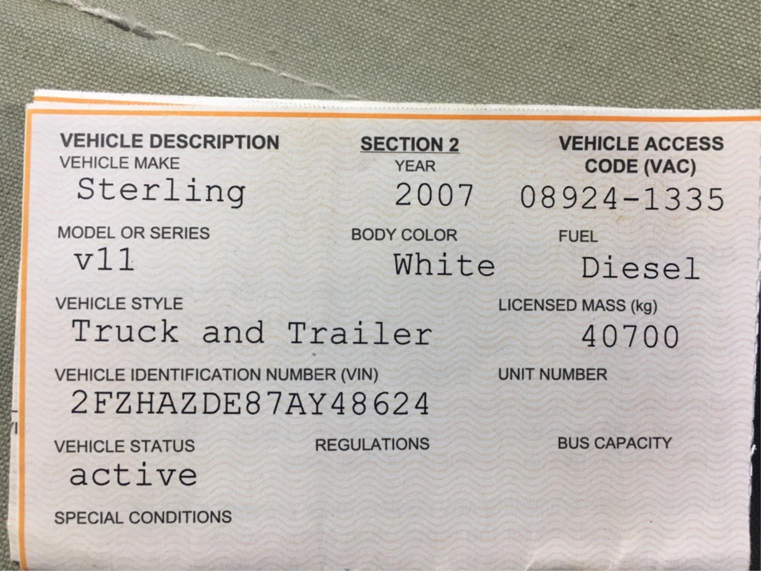 23 2007 Sterling T/A Cab & Chassis