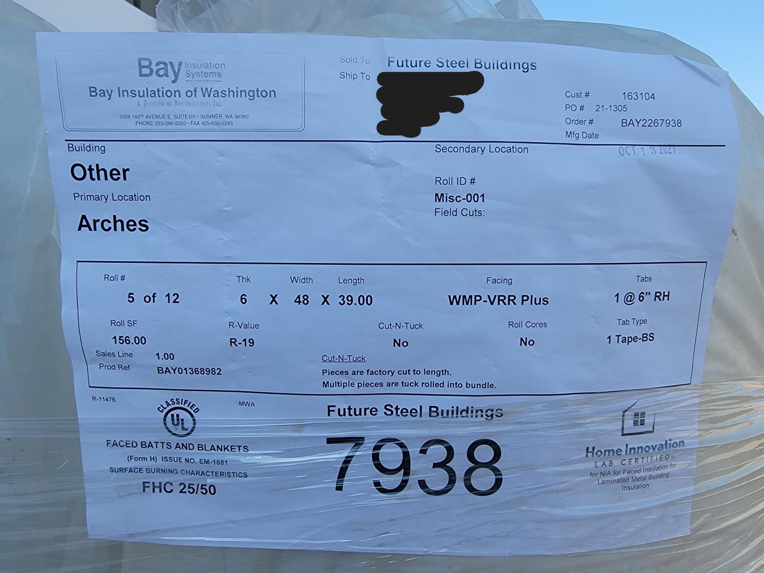 1678 (16) Rolls of Insulation and Qty of Insulation Hangers