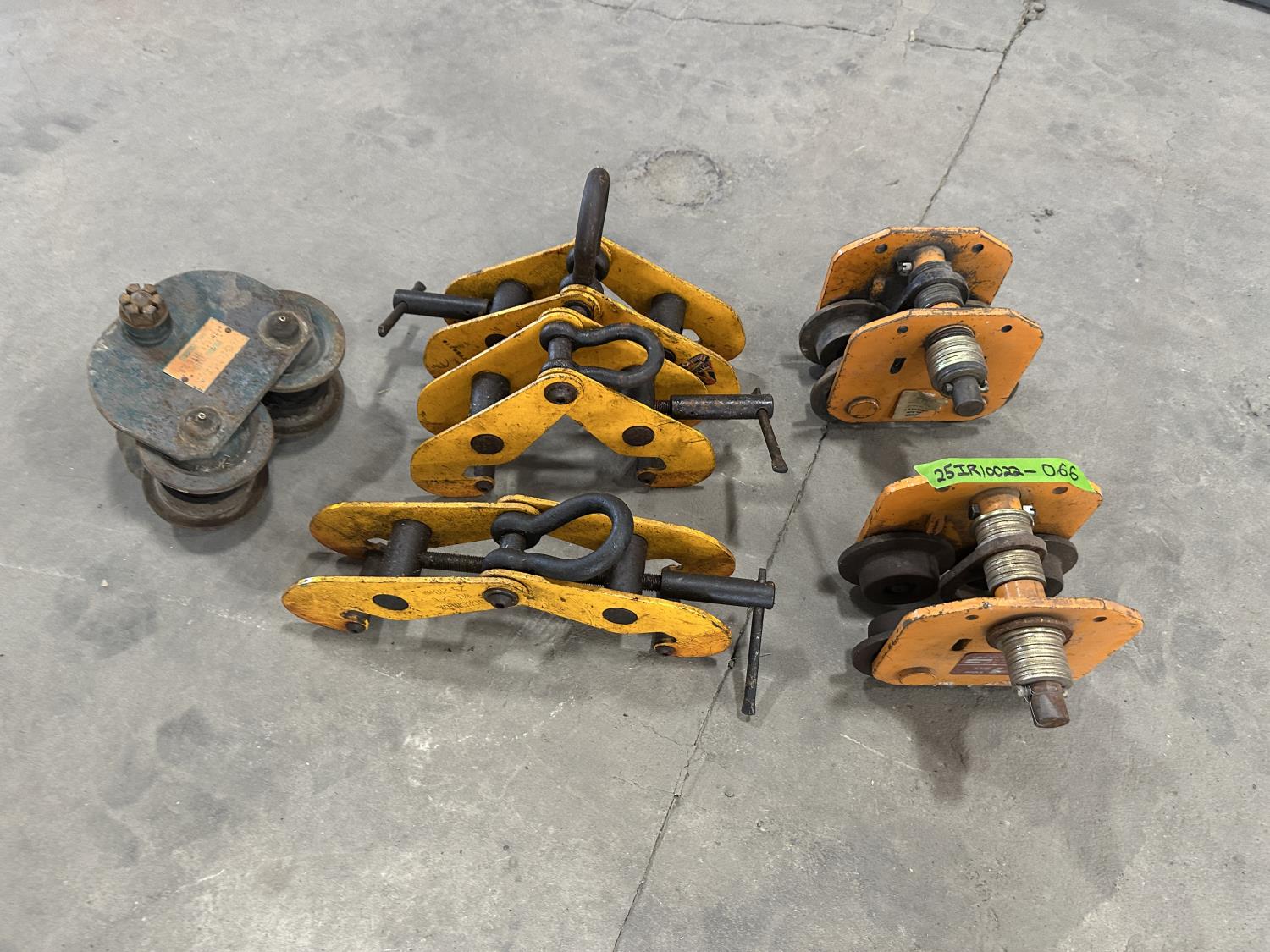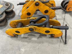 1208 (3) Beam Clamps and (3) 1 Ton Rollers