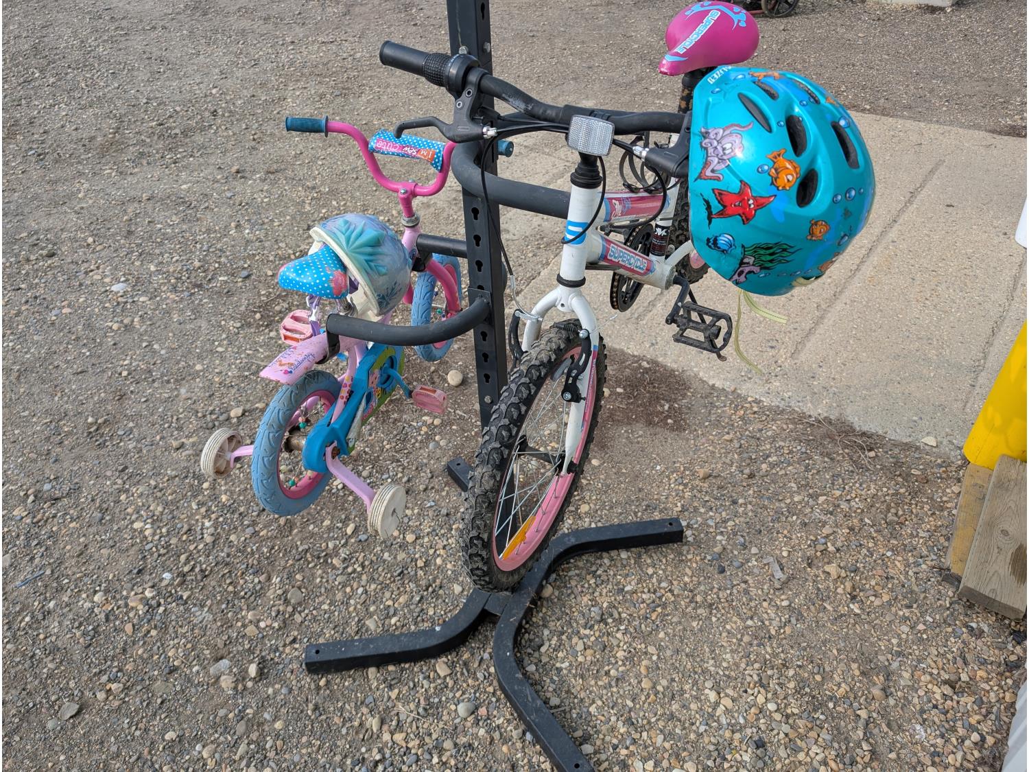 1605 4 Tier Bicycle Stand and (2) Children's Bikes