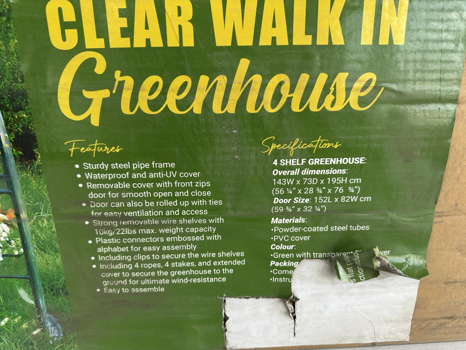 1142 56 Inch X 28 Inch X 76 Inch Clear Walk-In Greenhouse (Unused)